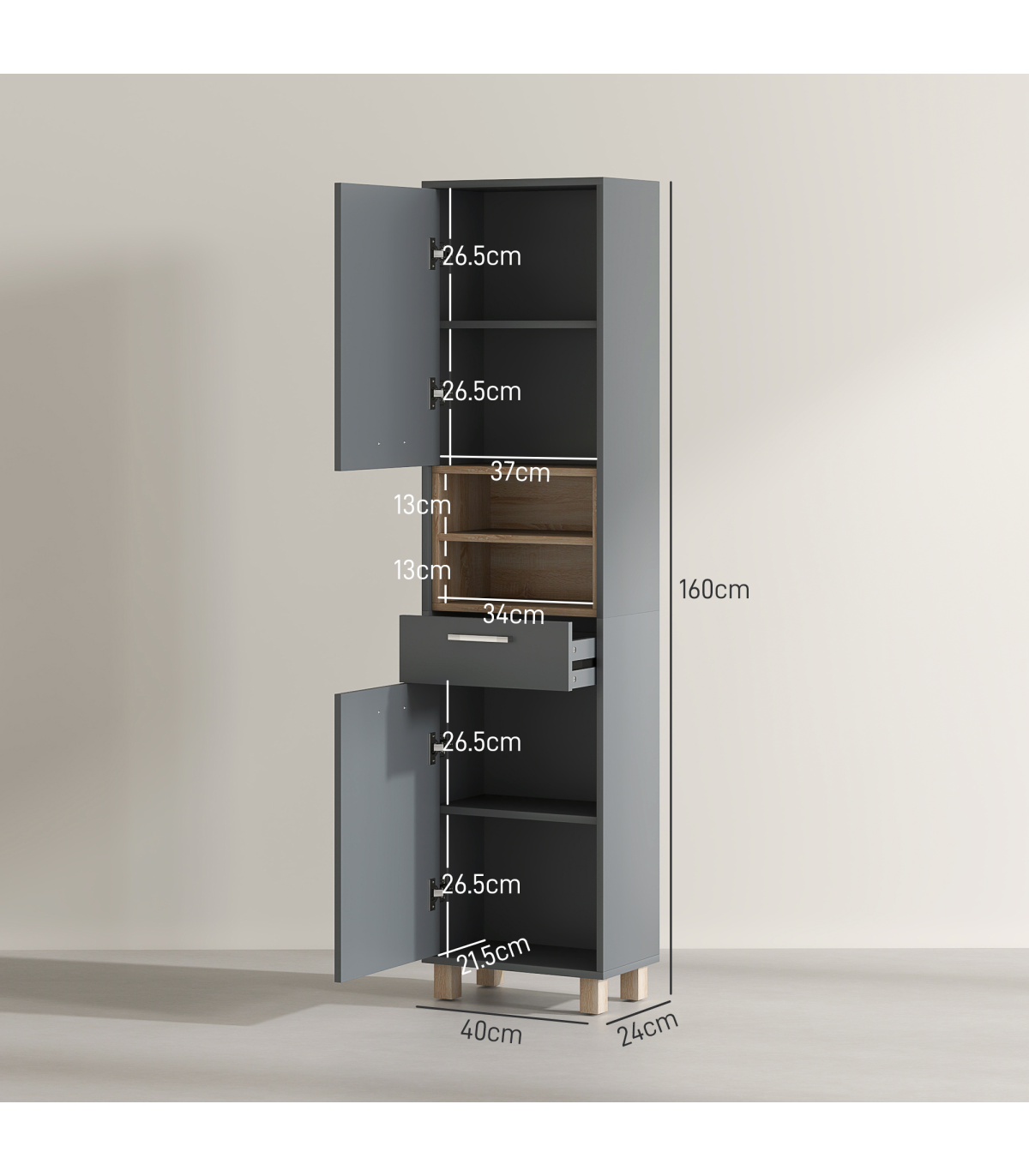 ● Overall Dimensions: 160H x 40W x 24Dcm