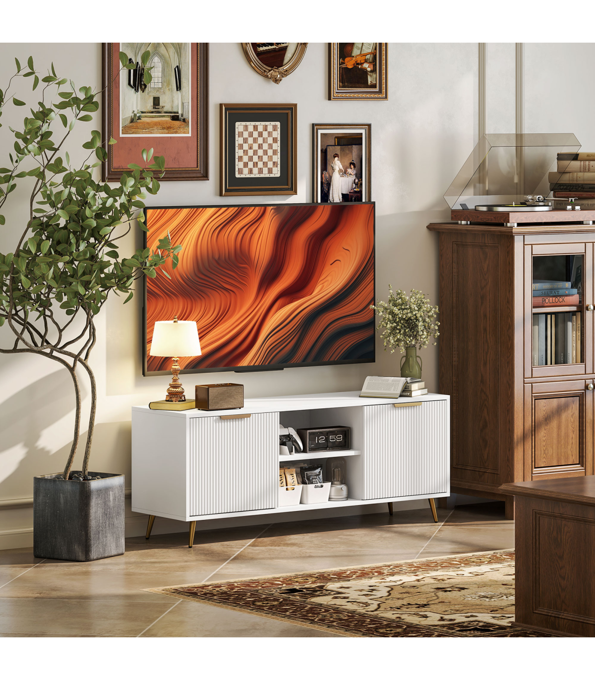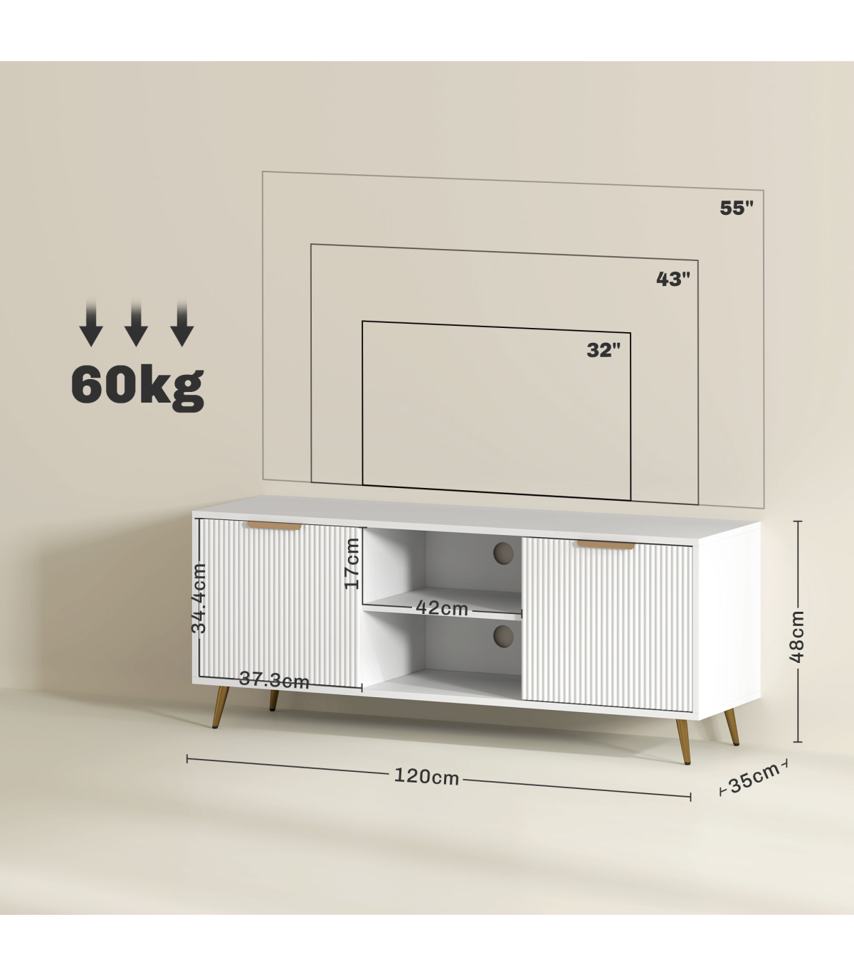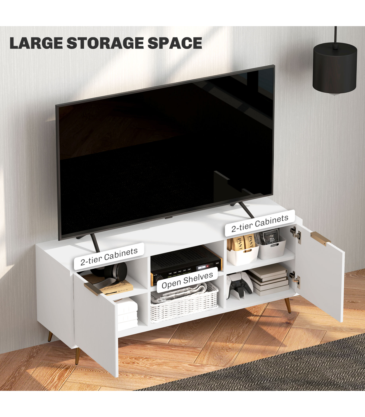 ● Accommodates TVs up to 55 inches for optimal viewing