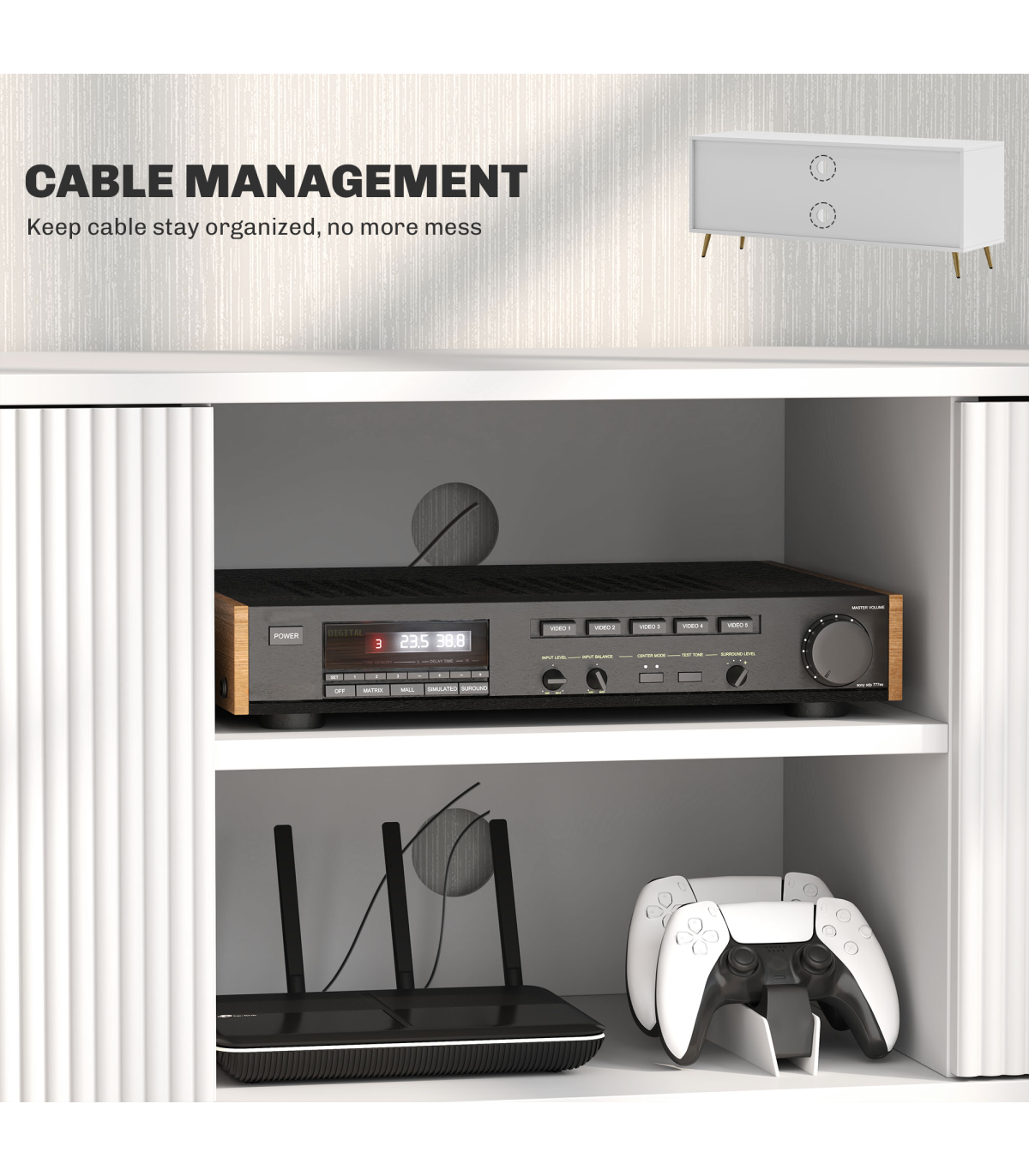 ● Two cable holes keep wires tidy and organised