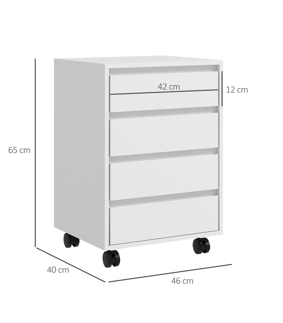 Introducing our versatile mobile filing cabinet, designed for your organisational needs. This white cabinet features four spacious drawers, providing ample storage for files and essentials. Its sturdy MDF structure ensures durability for everyday use while maintaining a stylish appearance.