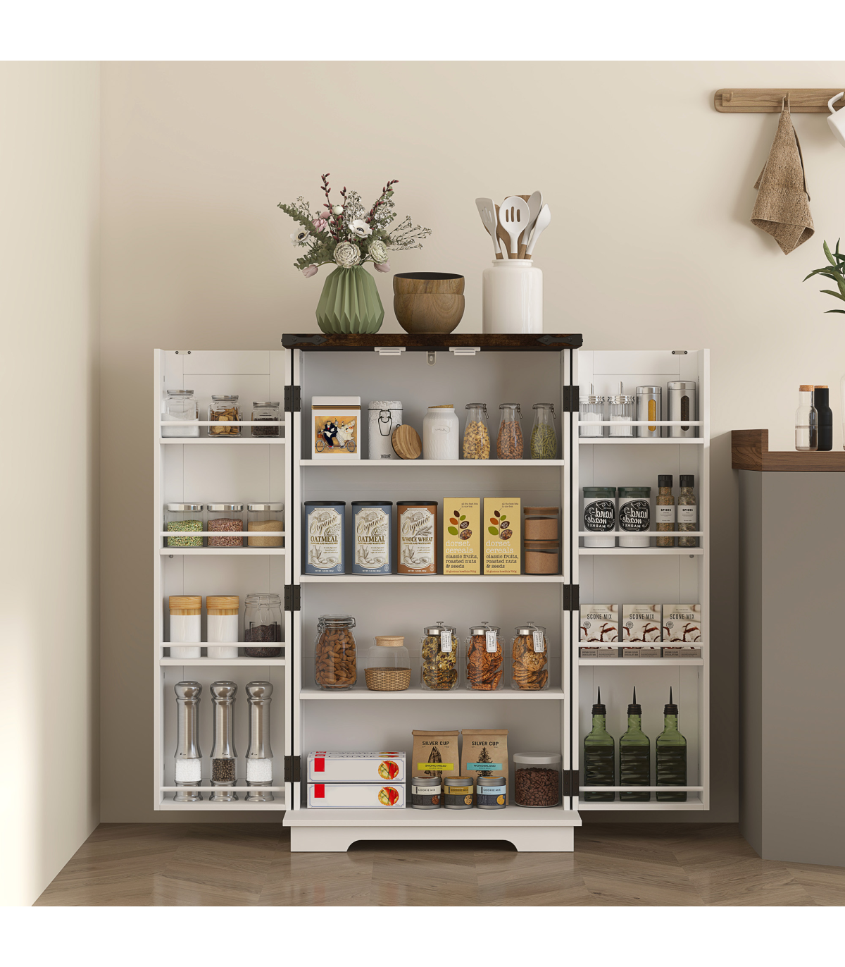 This cabinet is perfect for any room in your home, including the living room, kitchen, or hallway. Its stylish design makes it ideal for those seeking a blend of modern and farmhouse aesthetics.