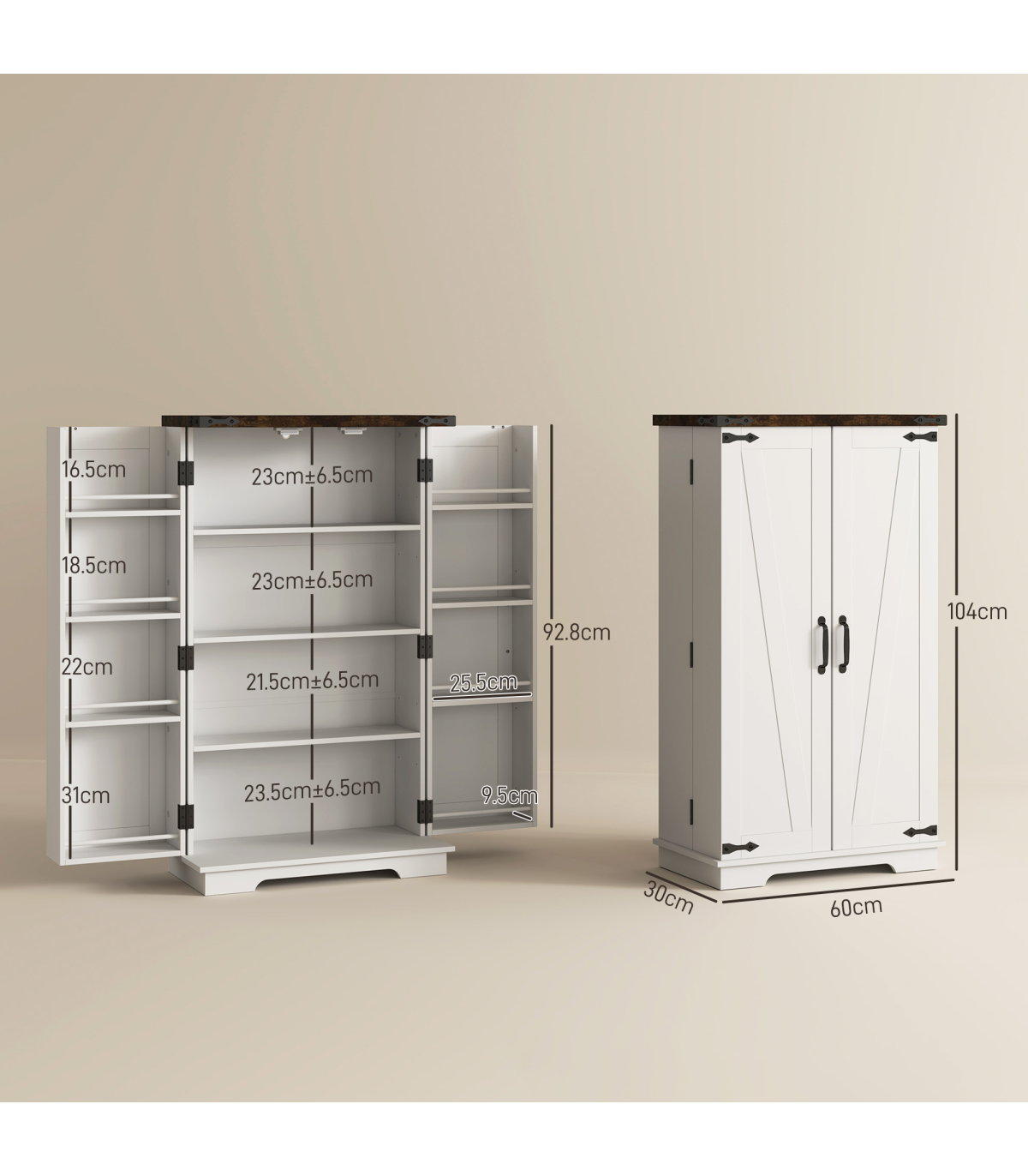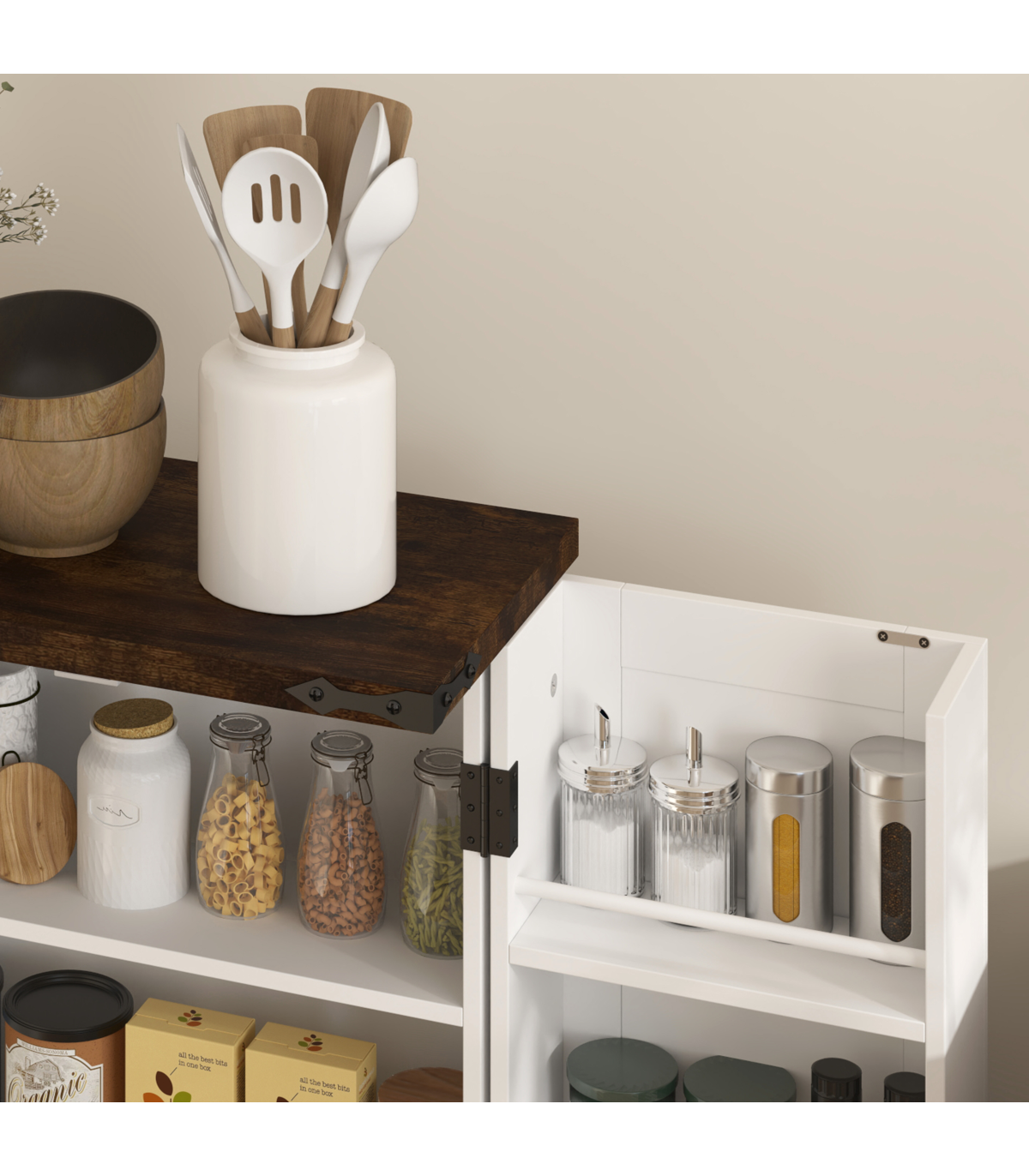 This stylish farmhouse cabinet combines functionality with a minimal aesthetic. Featuring a crisp white body and a wood-effect top, it seamlessly fits into any décor while providing ample storage space.