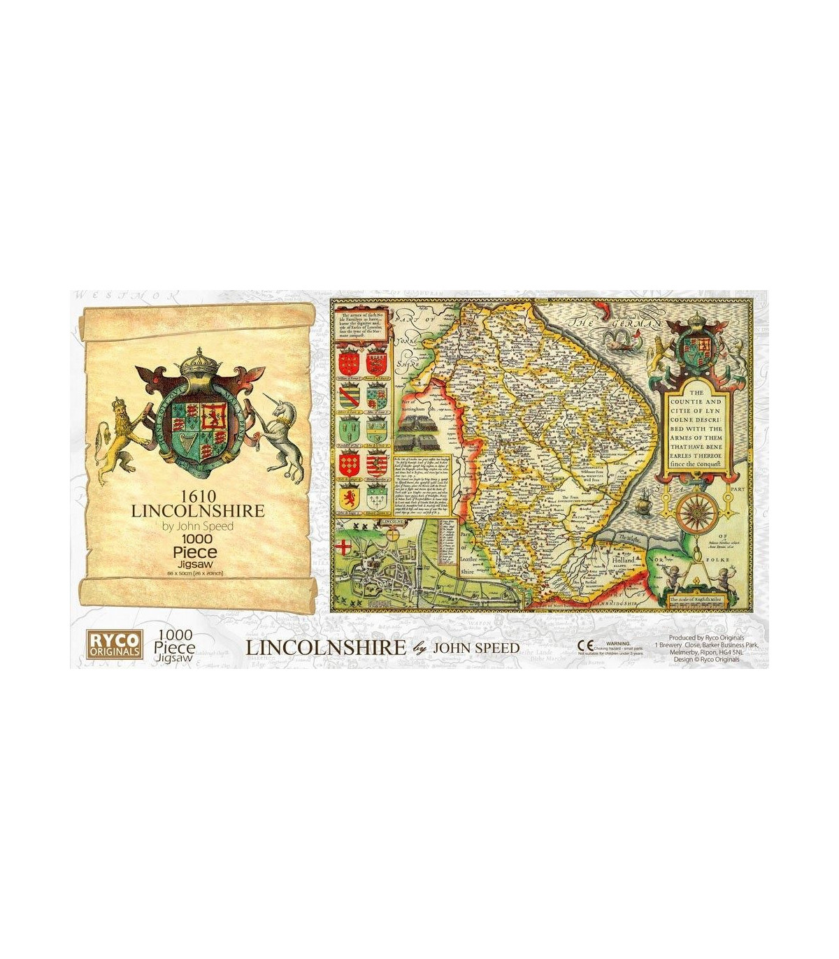 This is a superb jigsaw puzzle featuring the county of Lincolnshire in approximately 1610. The finished jigsaw measures 66 x 50cm, and comes with a Free colour A3 guide print., Free, colour, A3 print suitable for framing, 1000 piece jigsaw, 66 x 50cm, Each County map is taken from the John Speed 1610 Atla, Manufactured by us in Devon