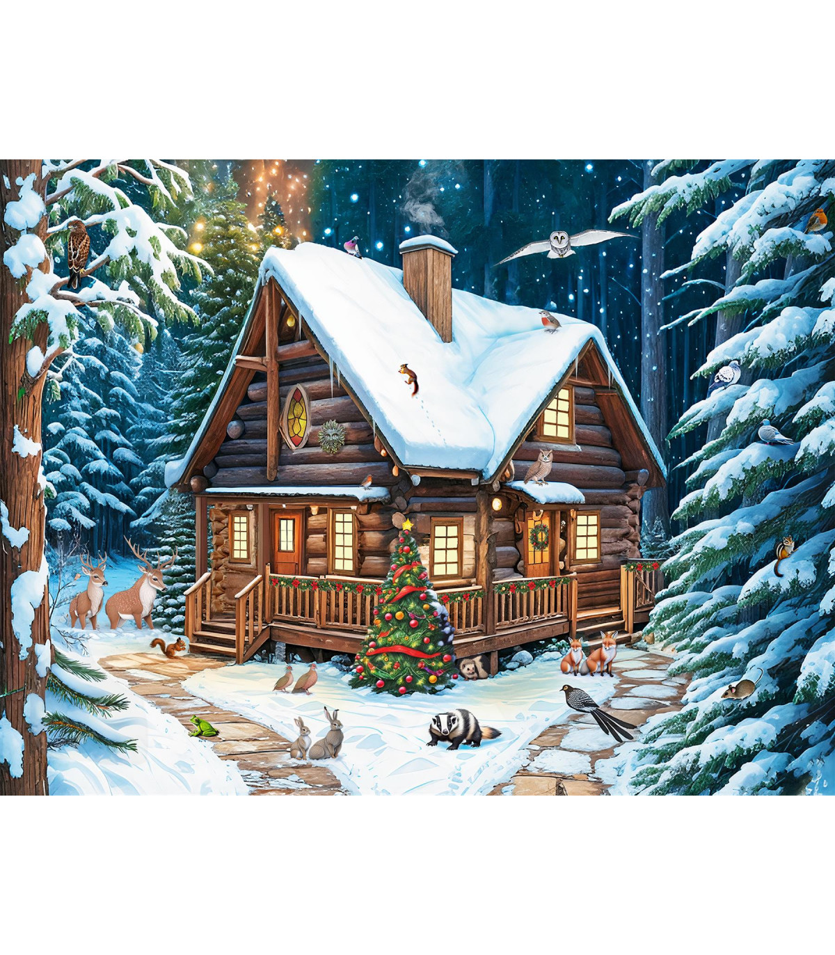 It’s the perfect time to cosy up and piece together this delightful snow-filled scene that’s gathered our friends of the forest for an enchanting, moonlit adventure. Here lies a hidden cabin, tucked away deep in the woods, nestled by heart-warming nature.