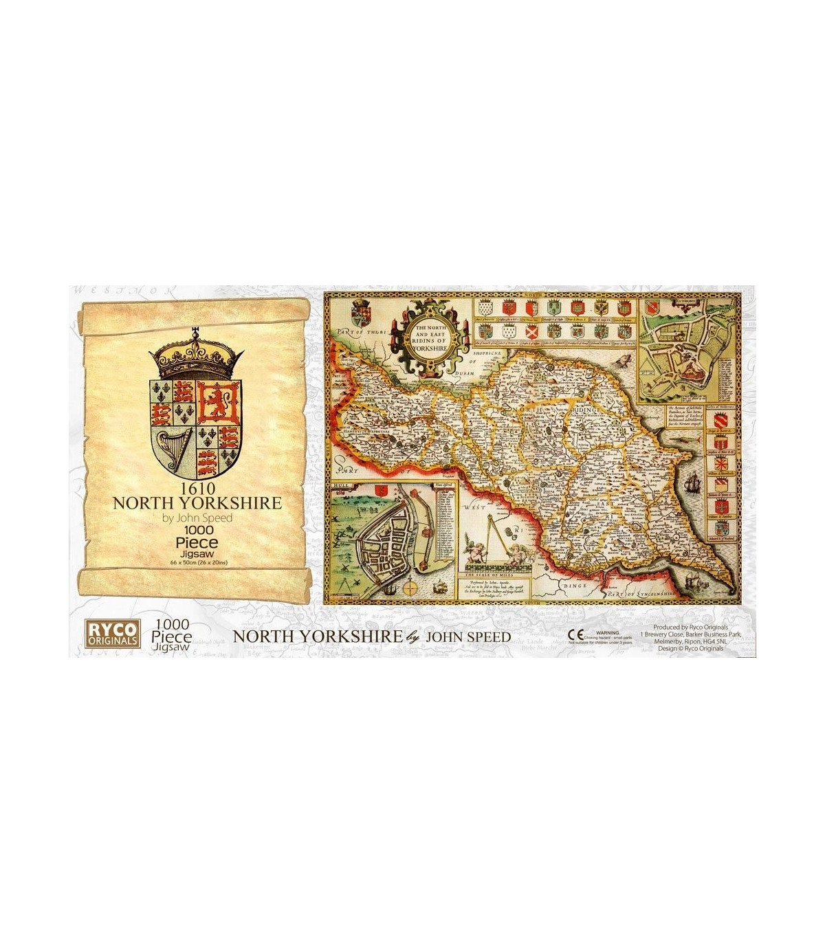 This is a superb jigsaw puzzle featuring the county of Yorkshire North & East Riding in approximately 1610. The finished jigsaw measures 66 x 50cm, and comes with a Free colour A3 guide print., Free, colour, A3 print suitable for framing, 1000 piece jigsaw, 66 x 50cm, Each County map is taken from the John Speed 1610 Atla, Manufactured by us in Devon
