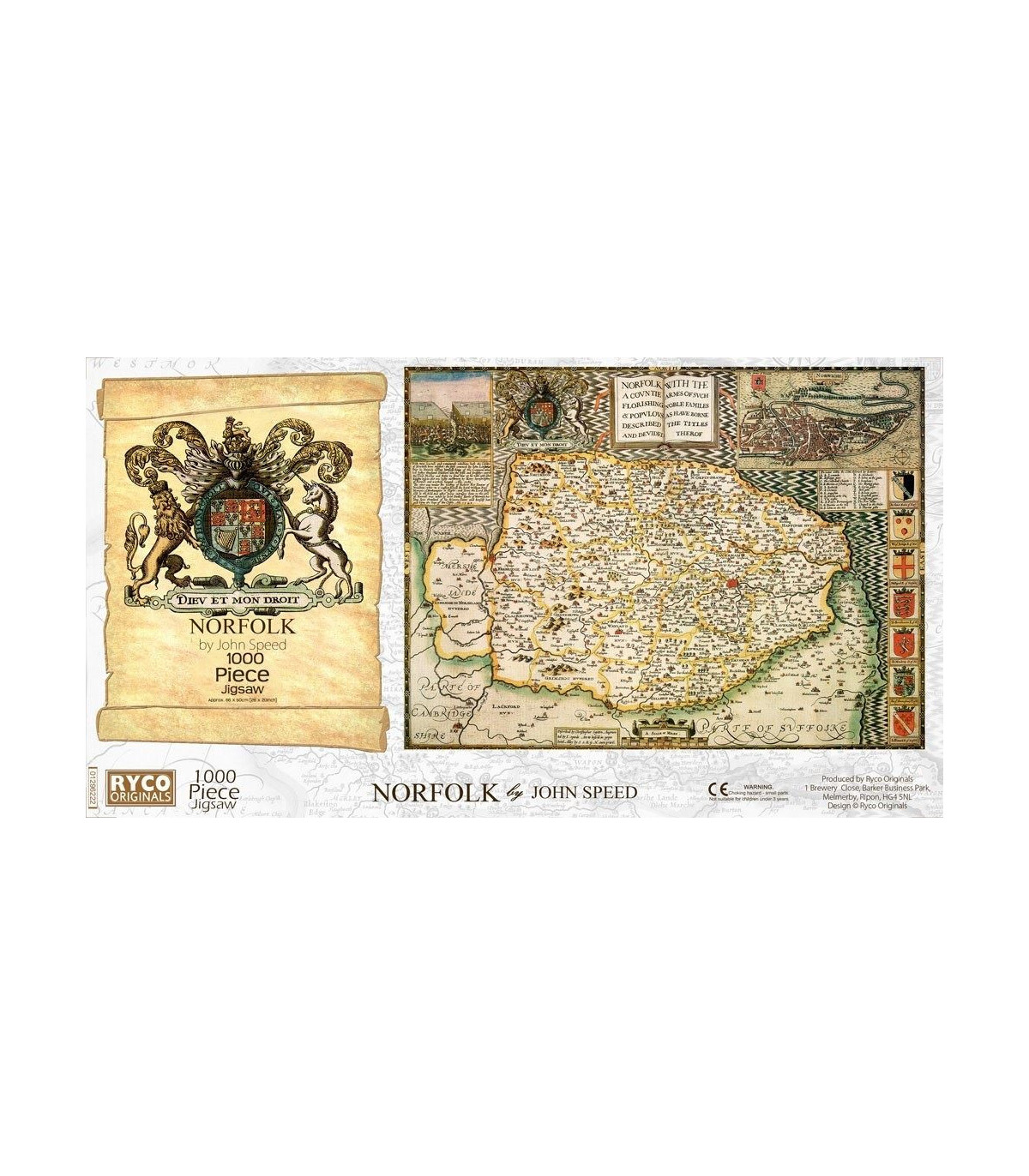 This is a superb jigsaw puzzle featuring the county of Northamptonshire in approximately 1610. The finished jigsaw measures 66 x 50cm, and comes with a Free colour A3 guide print., Free, colour, A3 print suitable for framing, 1000 piece jigsaw, 66 x 50cm, Each County map is taken from the John Speed 1610 Atla, Manufactured by us in Devon