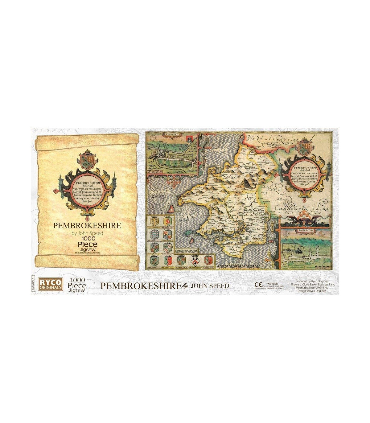This is a superb jigsaw puzzle featuring the county of Pembrokeshire in approximately 1610. The finished jigsaw measures 66 x 50cm, and comes with a Free colour A3 guide print., Free, colour, A3 print suitable for framing, 1000 piece jigsaw, 66 x 50cm, Each County map is taken from the John Speed 1610 Atla, Manufactured by us in Devon