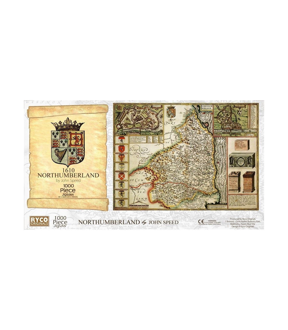 This is a superb jigsaw puzzle featuring the county of Northumberland in approximately 1610. The finished jigsaw measures 66 x 50cm, and comes with a Free colour A3 guide print., Free, colour, A3 print suitable for framing, 1000 piece jigsaw, 66 x 50cm, Each County map is taken from the John Speed 1610 Atla, Manufactured by us in Devon
