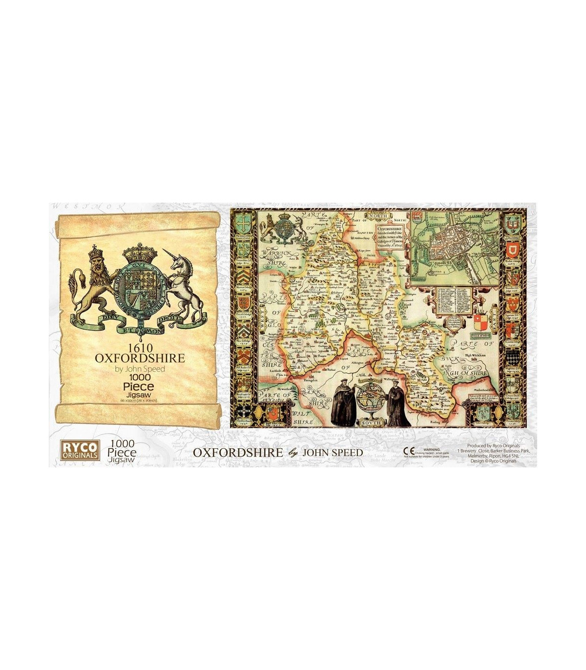 This is a superb jigsaw puzzle featuring the county of Oxfordshire in approximately 1610. The finished jigsaw measures 66 x 50cm, and comes with a Free colour A3 guide print., Free, colour, A3 print suitable for framing, 1000 piece jigsaw, 66 x 50cm, Each County map is taken from the John Speed 1610 Atla, Manufactured by us in Devon