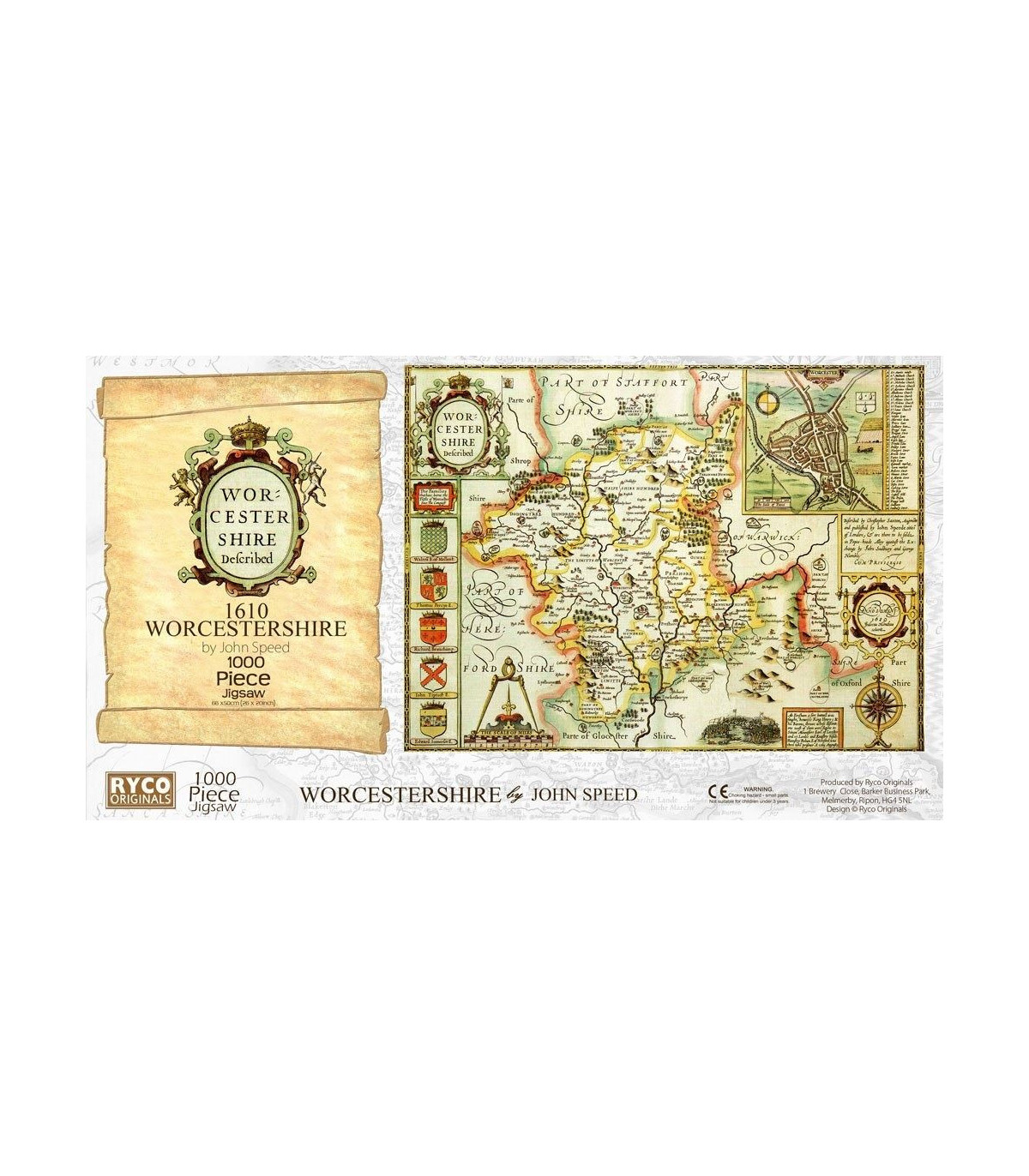 This is a superb jigsaw puzzle featuring the county of Worcestershire in approximately 1610. The finished jigsaw measures 66 x 50cm, and comes with a Free colour A3 guide print., Free, colour, A3 print suitable for framing, 1000 piece jigsaw, 66 x 50cm, Each County map is taken from the John Speed 1610 Atla, Manufactured by us in Devon