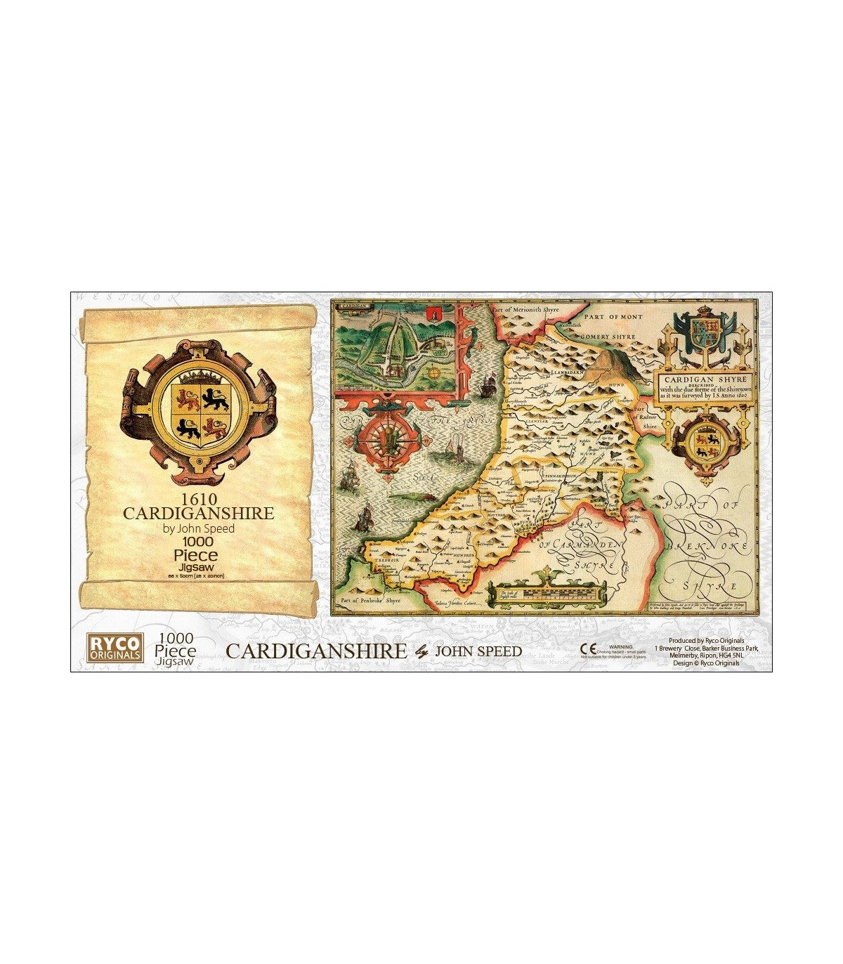 This is a superb jigsaw puzzle featuring the county of Cardiganshire in approximately 1610. The finished jigsaw measures 66 x 50cm, and comes with a Free colour A3 guide print., Free, colour, A3 print suitable for framing, 1000 piece jigsaw, 66 x 50cm, Each County map is taken from the John Speed 1610 Atla, Manufactured by us in Devon