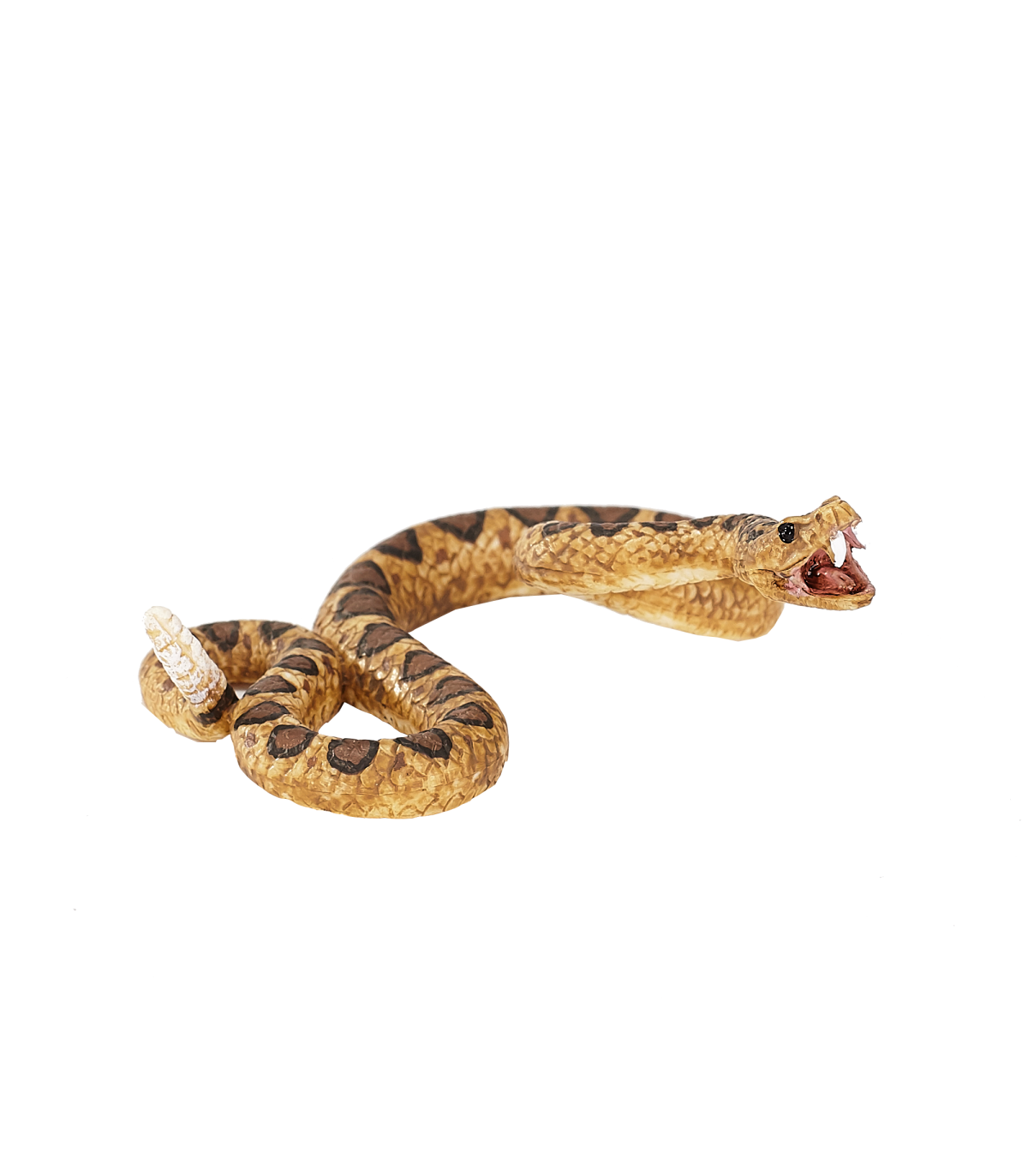 Rattlesnakes can grow from 1 to 8 feet long, depending on the species. They all have patterned skin, but their color can vary. All rattlers have a triangle shaped head and eyes with a black slit. Rattlesnake venom is poisonous to humans, but they're not trying to hurt us. They would rather be left alone. They usually only strike if they're scared or startled.