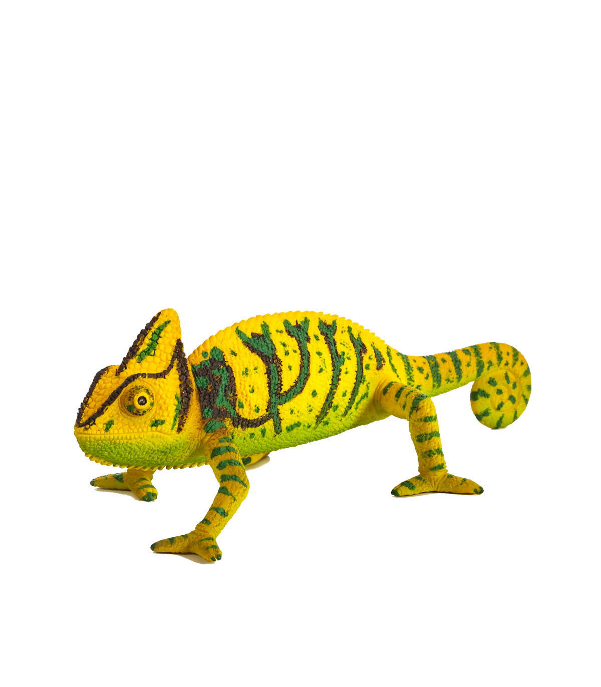 Chameleons are reptiles that are part of the iguana suborder. These colourful lizards are known as one of the few animals that can change skin colour. However, it is a misconception that chameleons change colours to match their surroundings. In fact, aB chameleon's skin changes colours in response to its emotions, such as anger or fear as well as changes in light, temperature or humidity.