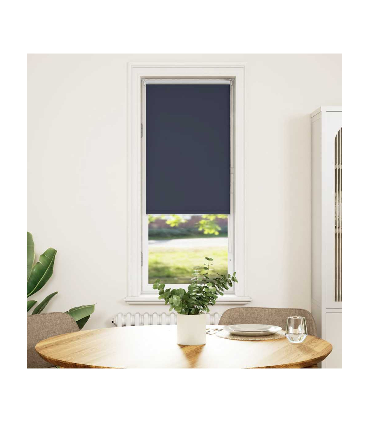 Elevate your room's style and functionality with this roller blind, providing privacy, light control, and heat regulation. Durable and low maintenance: Made from 100% polyester, the roller blind is built to last and resist wear and tear. They are also easy to clean, typically requiring light dusting or wiping with a damp cloth.Privacy and light control: Thanks to the blackout design, this roller blind provides privacy and partially blocks direct sunlight so that you can regulate the indoor temperature according to your needs.Multiple mounting methods: You can attach the roller blind to the wall or window with screws or without drilling using clamping brackets, depending on your needs. Clamping brackets for window frame rebate thickness between 1,6 and 2,5 cm.Child safety and adjustability: The roller blind includes a chain connector that makes it easy to adjust the height according to your needs, and it also has a cord clip to add child safety.Wide applications: This versatile roller blind is suitable for homes, offices, cafes, office buildings, and so on. Warning: Keep cords out of the reach of young children. Cords may become wrapped around a child’s neck. Good to know:Before buying blinds, start by measuring your window glass. Just a friendly tip: the fabric is a bit narrower than the total width, including the brackets.To make sure your new blinds provide complete coverage, just add 4,3 cm to the width of the window glass when calculating what to order.