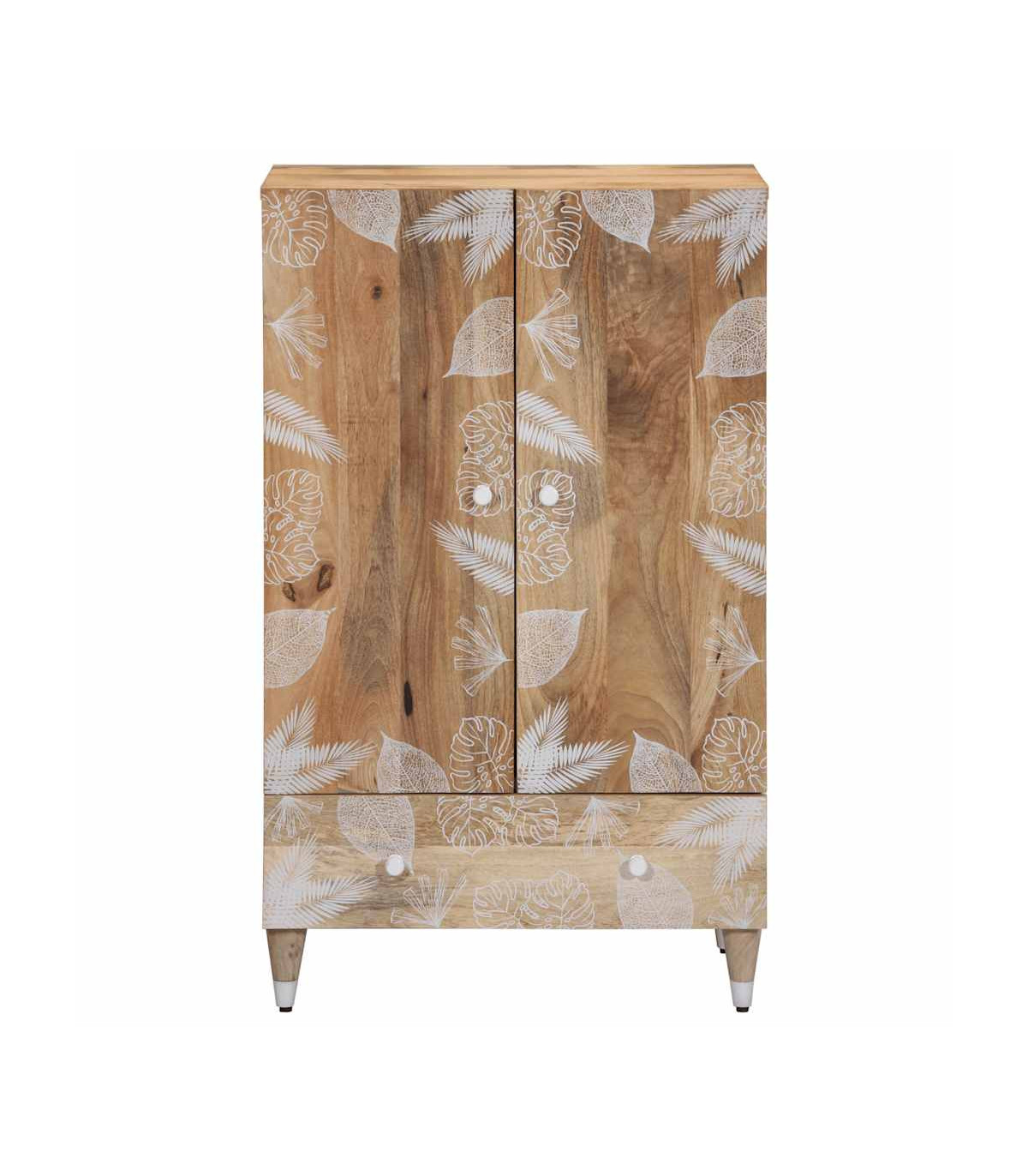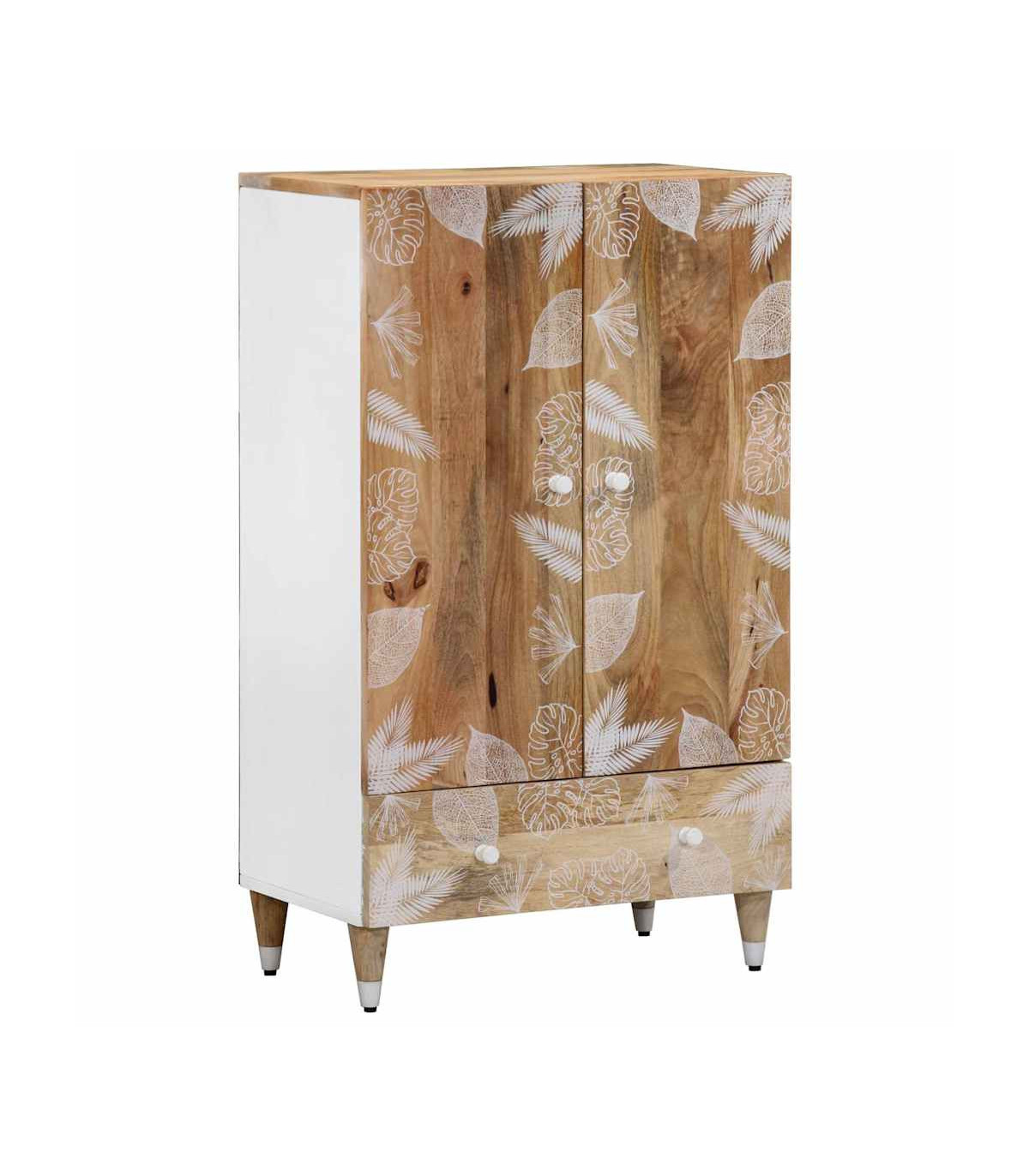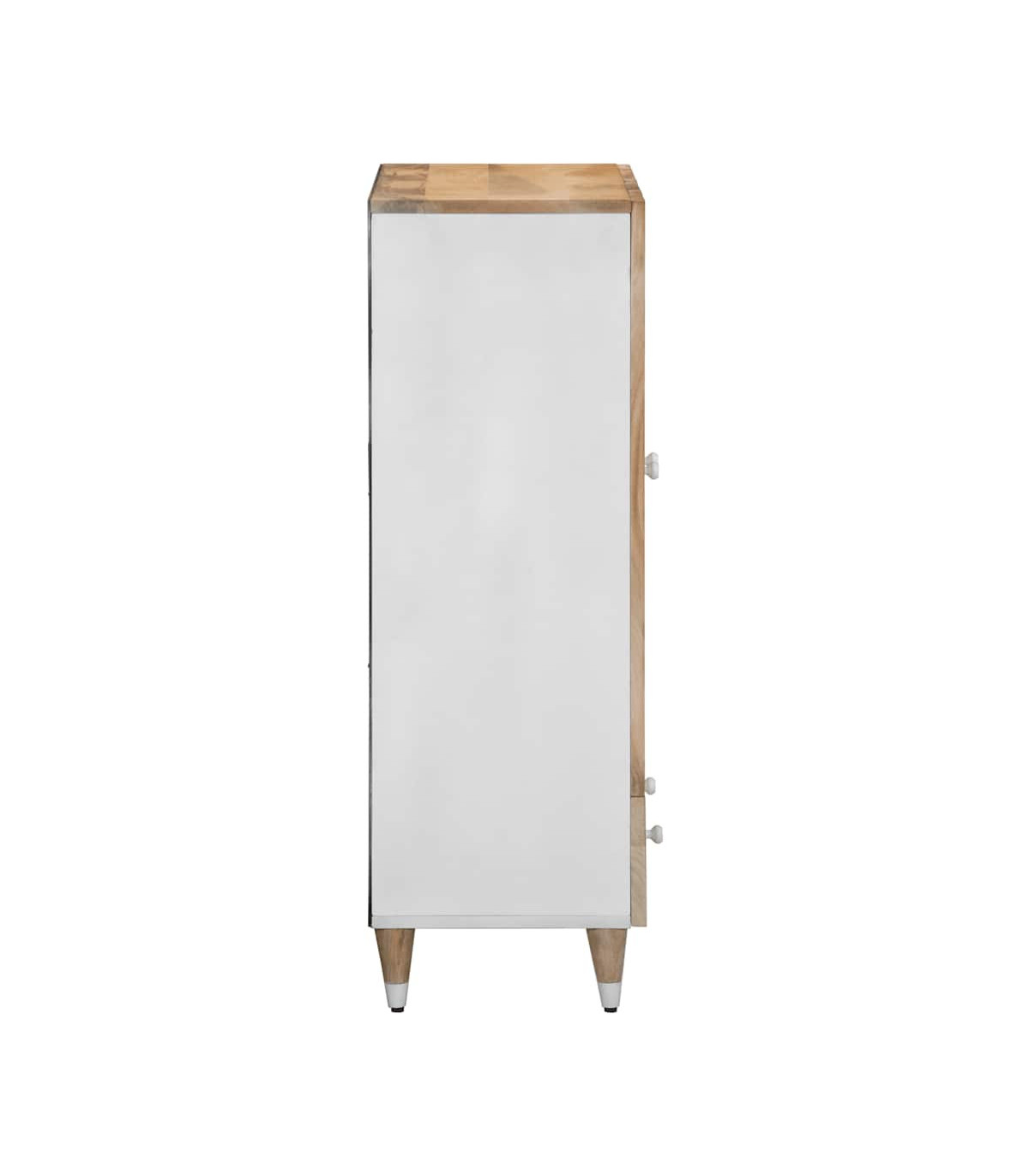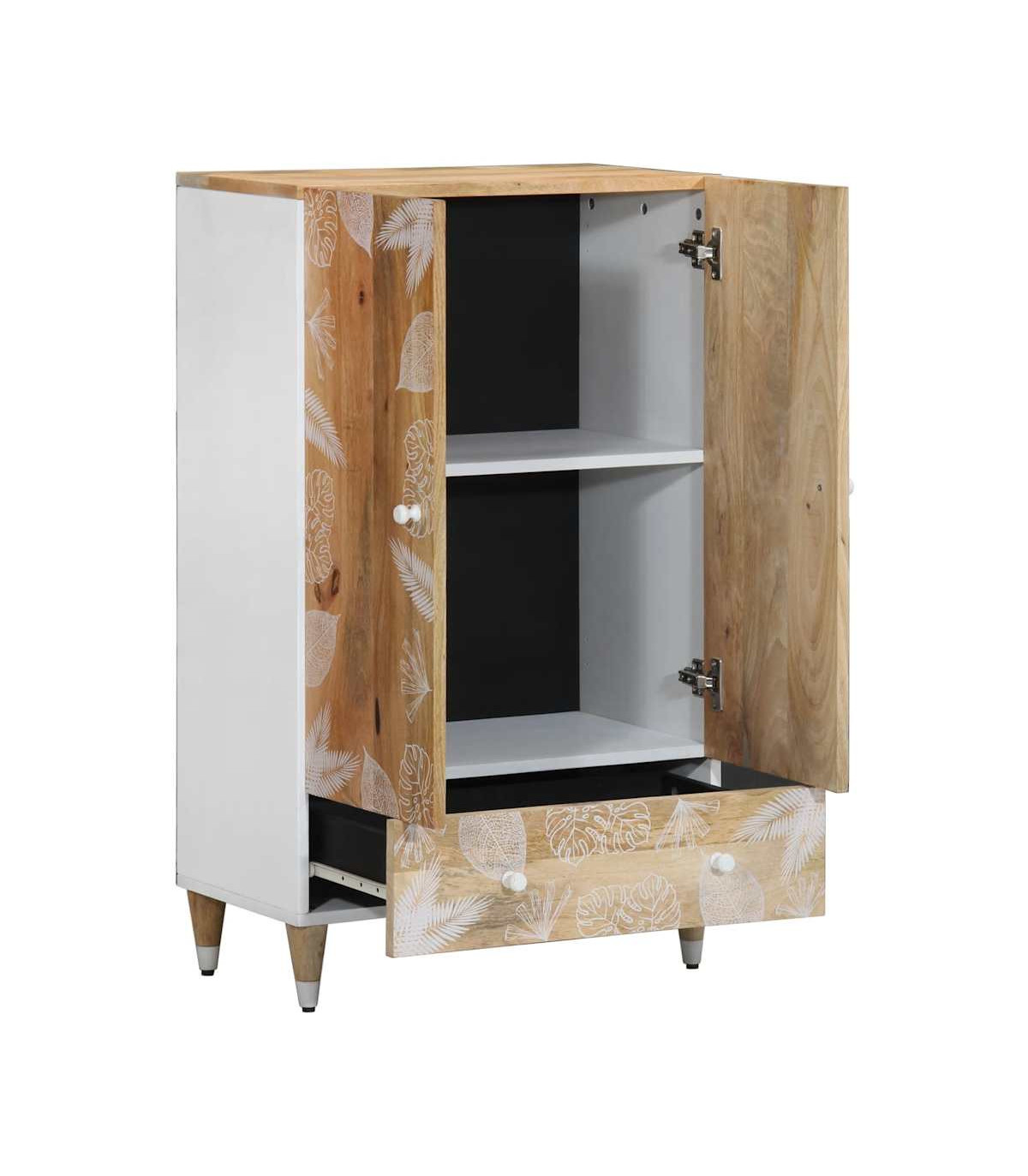 - Material: Mango natural with white paint screen, engineered wood, metal