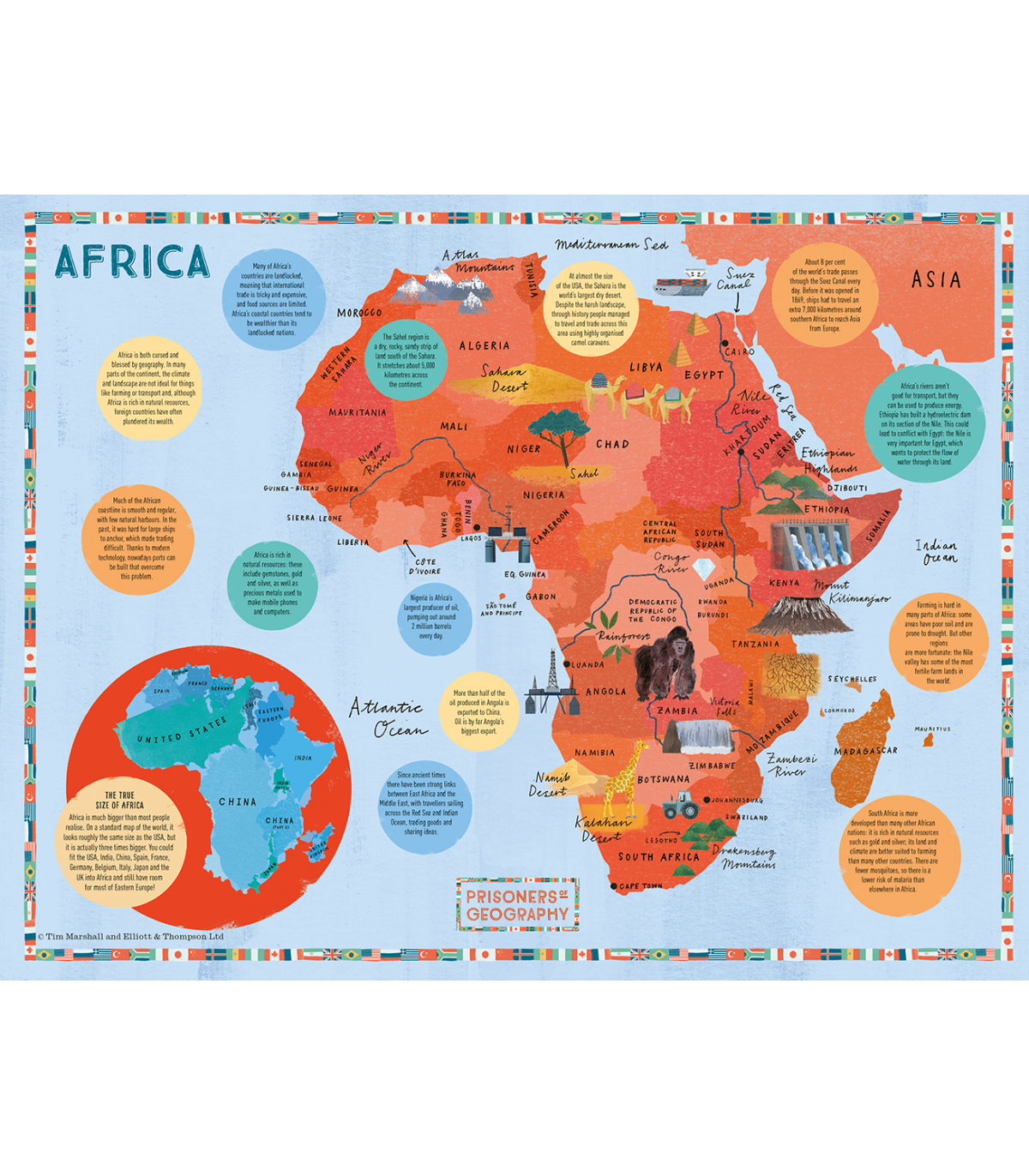 Did you know Africa is actually far bigger than most people know? Or that Ethiopia has built a hydroelectric dam to produce energy on its part of the Nile? East Africa also has strong ties with the Middle East for trade and economics. Packed with facts and beautifully illustrated, this stunning map of Africa is sure to inspire curious minds everywhere.