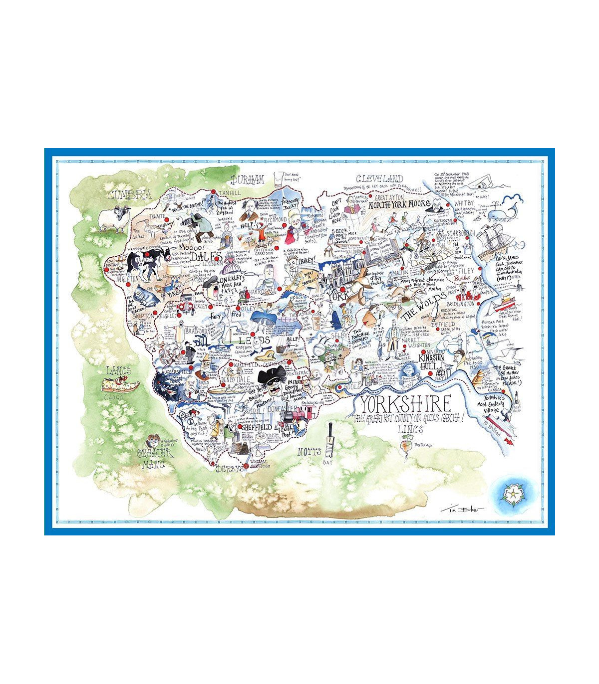 A fantastic and funny map of Yorkshire! In this funny map jigsaw puzzle, you will find many classic Yorkshire traits and idiosyncrasies.