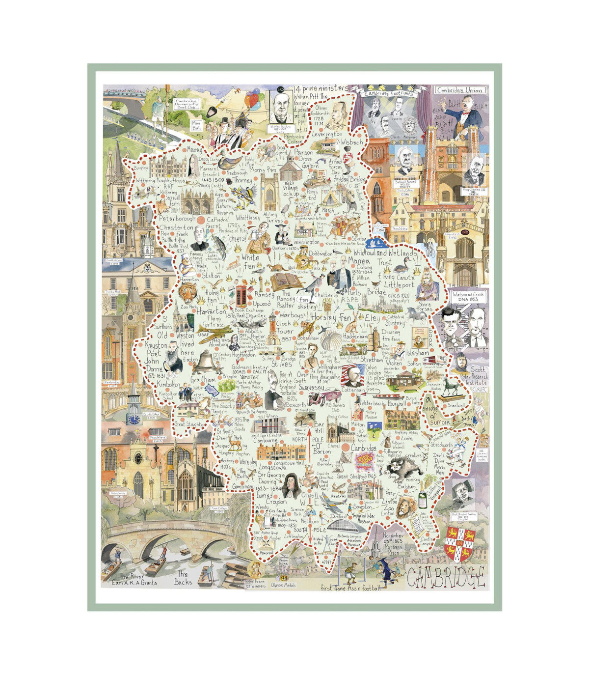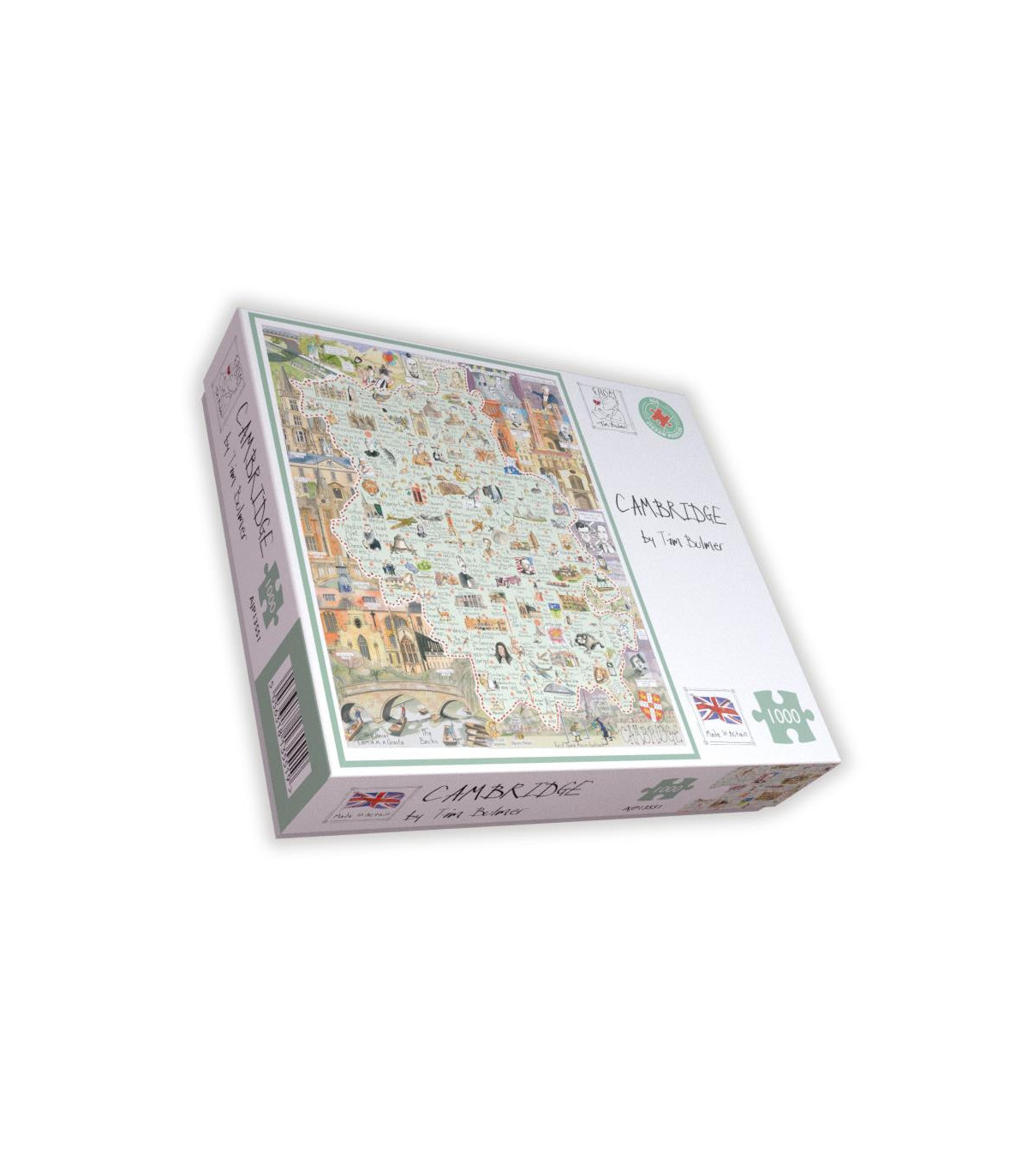Challenge yourself to a vibrant adventure through the heart of Cambridge with Tim Bulmer’s captivating illustrated 1000 piece map jigsaw puzzle!