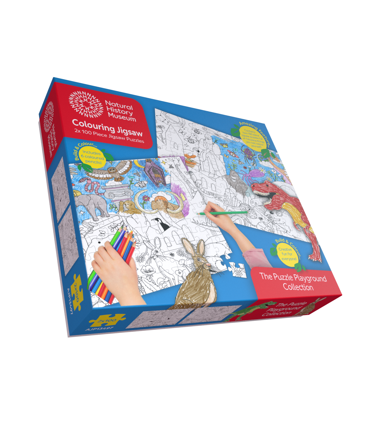 This entertaining jigsaw set includes 2 x 100 Piece puzzles and a pack of 6 colouring pencils. It's time to build and colour!