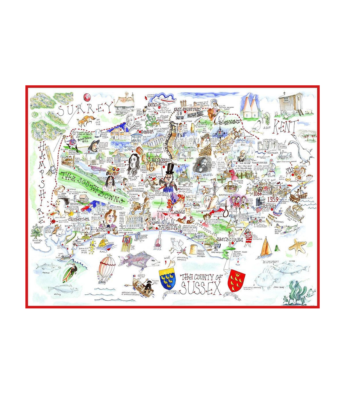 A very funny jigsaw puzzle that has a lot of amusing depictions of events and places in Sussex, including omnivorous seagulls, Bognor Regis 'the sunniest place in GB', Ashdown forest which inspired A.A Milne's 100-acre forest in the Winnie the Pooh books, and Beachy Head at Eastbourne which has the tallest chalk cliff in Britain! You will certainly learn something new from this fantastic puzzle and even if you do know it all, it will certainly amuse you!