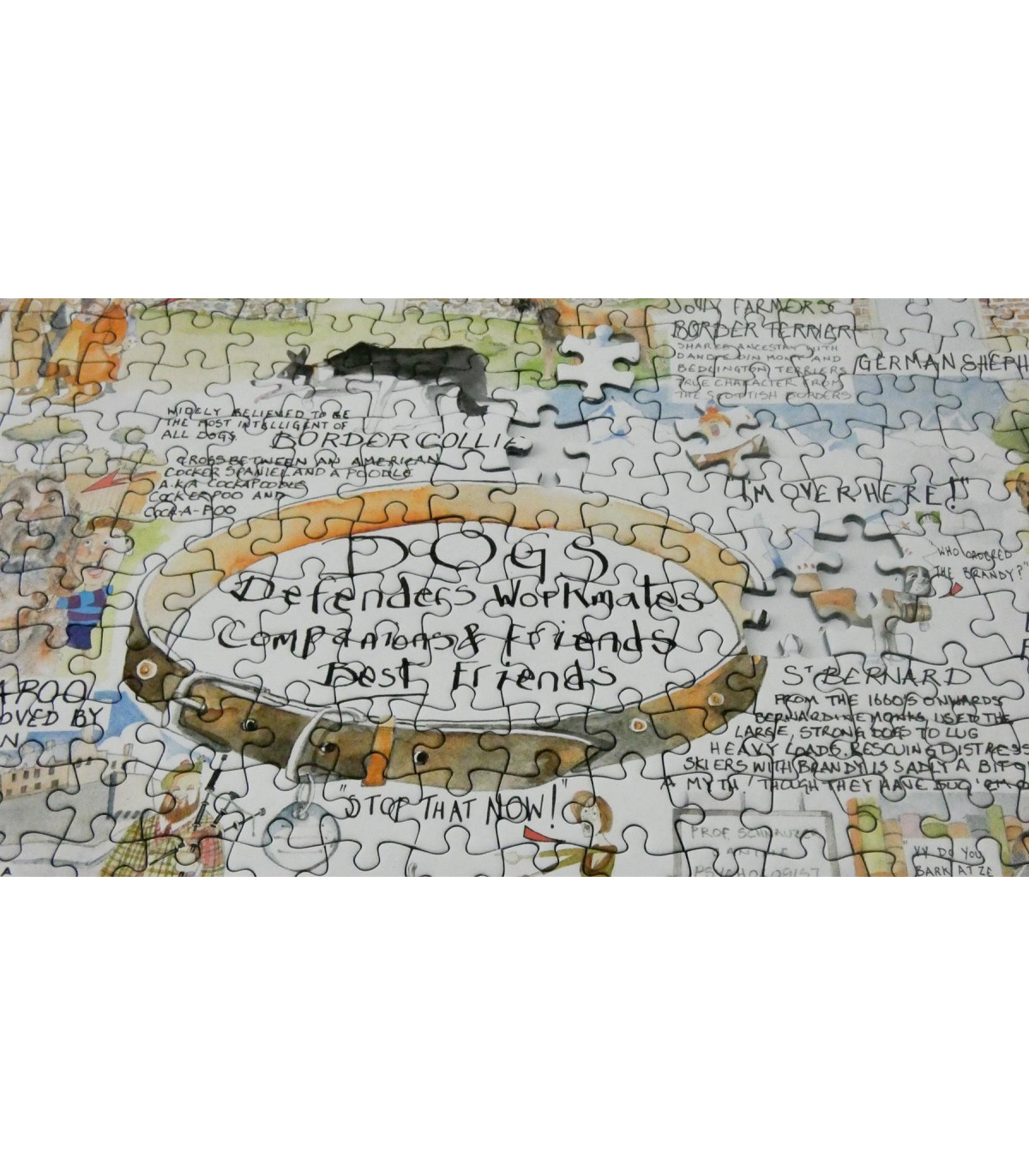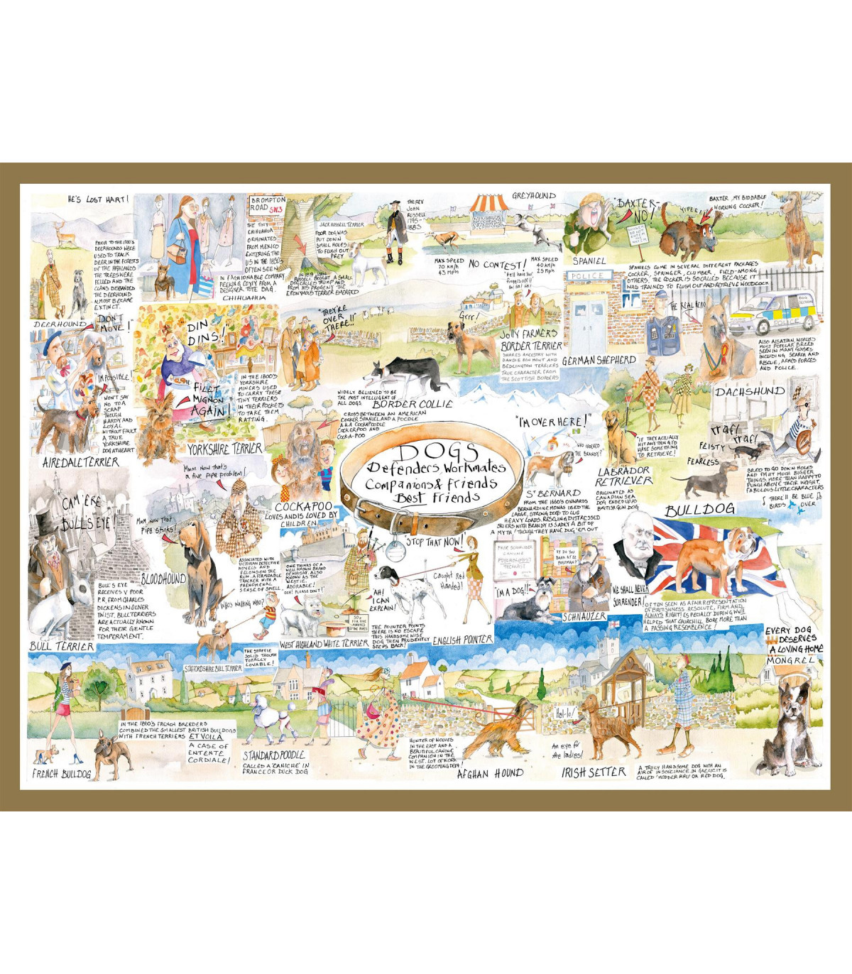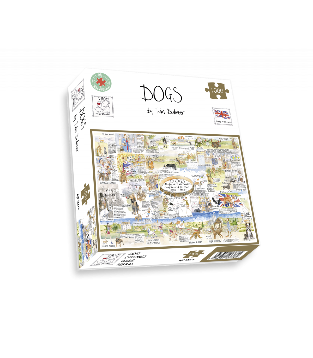 Dog lovers rejoice for Tim Bulmer’s “Dogs”! This charming jigsaw puzzle is filled with fun facts about our favourite canine companions – did you know in the 1800’s Yorkshire Terriers would be carried in the pockets of miners down to the mines to go ratting? Or that St Bernard’s have been used by Bernadine Monks since the 1660’s to lug heavy loads? All of this is accompanied by Tim’s delightfully cheeky illustration style, this puzzle will challenge you and your family and provide hours of fun!