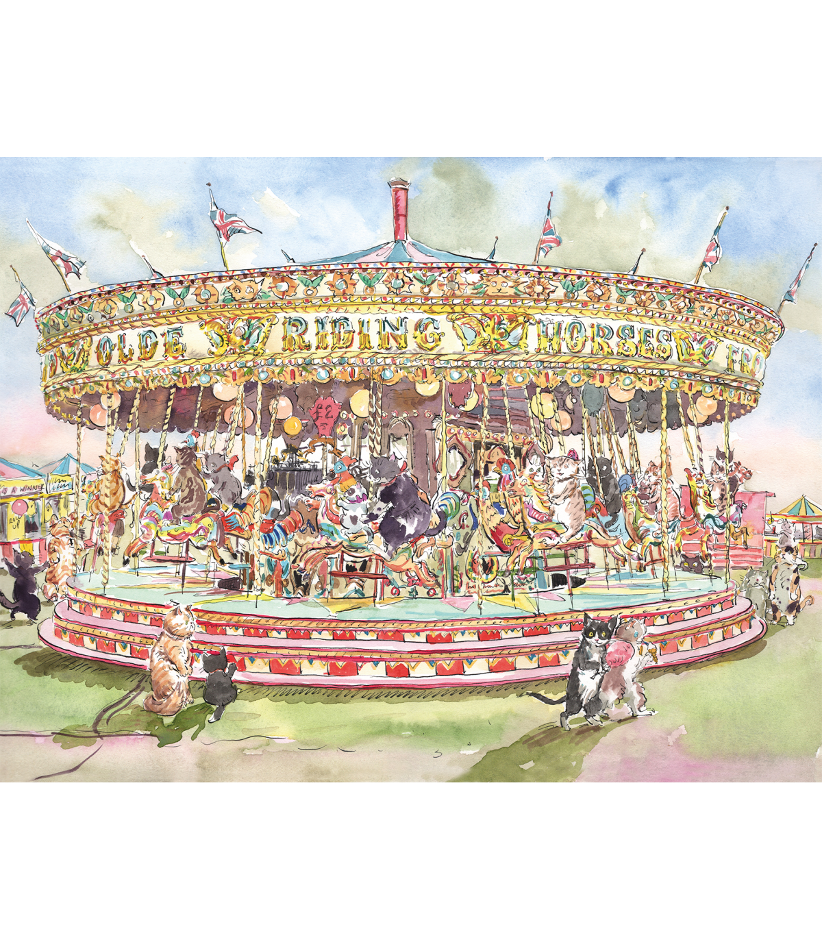 <p>Jump straight onto a much-loved fairground ride with these adorable furry friends as you piece together The Cat Carousel 1000 Piece Jigsaw Puzzle by Claire Fletcher!</p><p>This 1000 piece jigsaw puzzle features quirky cats frolicking on a classic fairground ride. Who doesn't love a carousel? Sure to bring hours of fun and laughter, this puzzle also boasts beautiful artwork filled with incredible amounts of detail and vibrant colours. </p><p>If you're a cat lover, and love artwork that let's your imagination run wild then this is the jigsaw puzzle for you! Can you spot a kitty that looks like your own furry friend? </p><p>Key Features:</p><p>1000 Pieces</p><p>Incredible artwork by Claire Fletcher </p><p>Perfect for people that love cats </p><p>Completed puzzle measures 66 x 50cm Check out the rest of the AJP Artists collection by clicking here!</p>