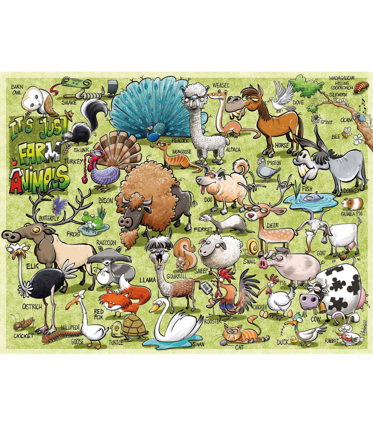 ‘It’s Just… Farm Animals’ is a fun, 1000 piece cartoon jigsaw puzzle, illustrated by Ricardo Galvao and part of the ‘It’s Just…’ range.