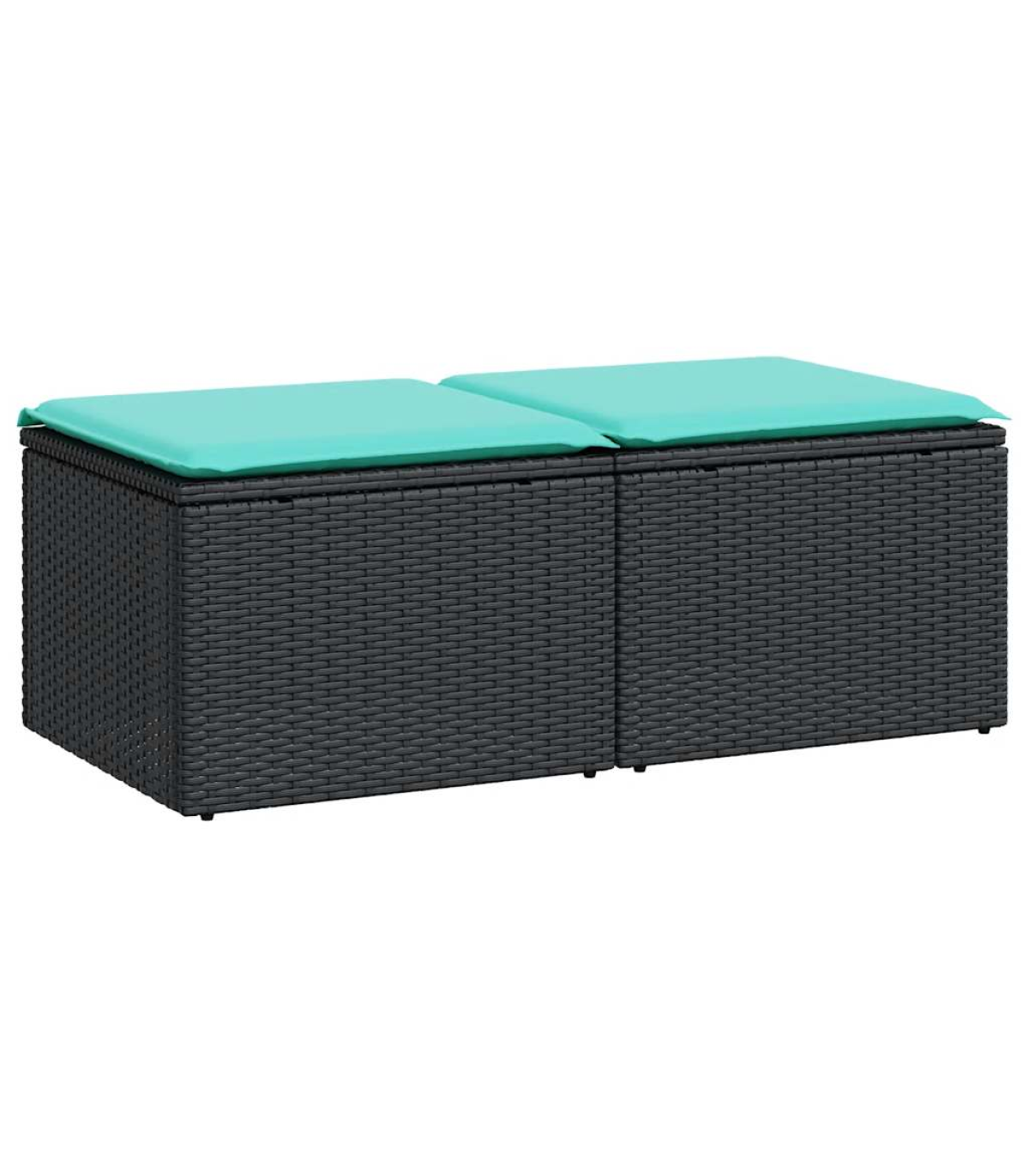 vidaXL 2 Piece Garden Sofa Set with Cushions Black Poly Rattan Acacia