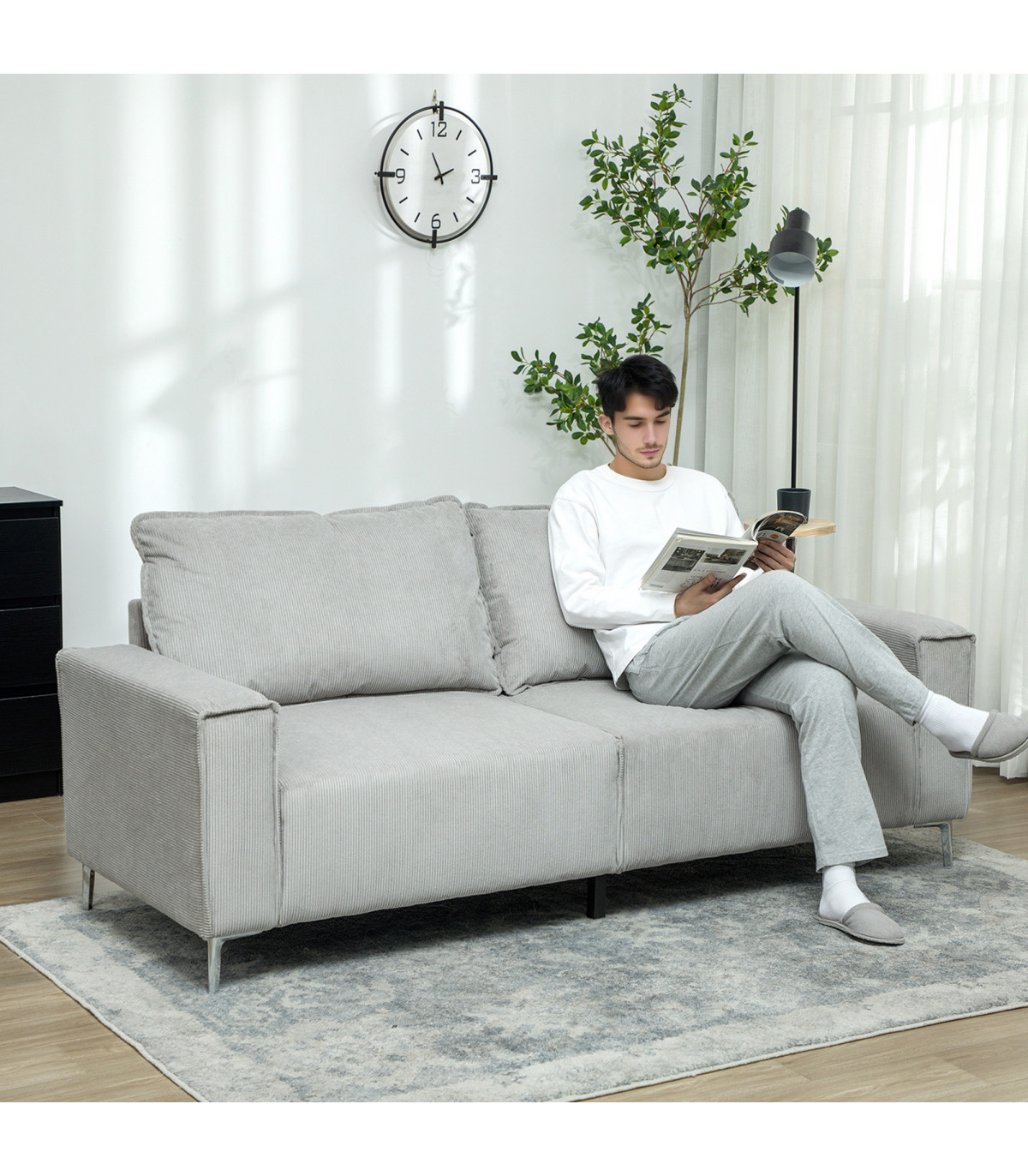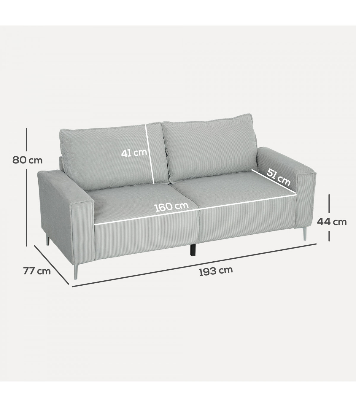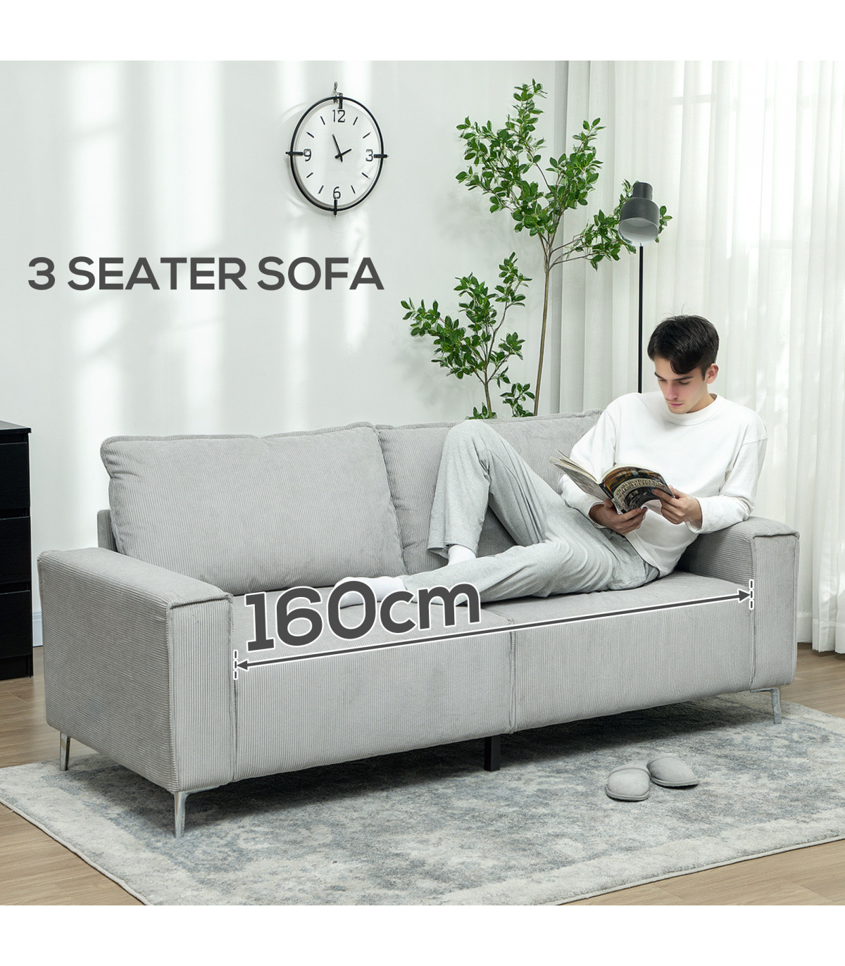 Transform your living area with this stunning three-seater sofa, upholstered in luxurious corduroy. Designed for comfort and style, this sofa provides ample space to relax and unwind with friends or family. The light grey colour adds a chic, modern touch to any decor.