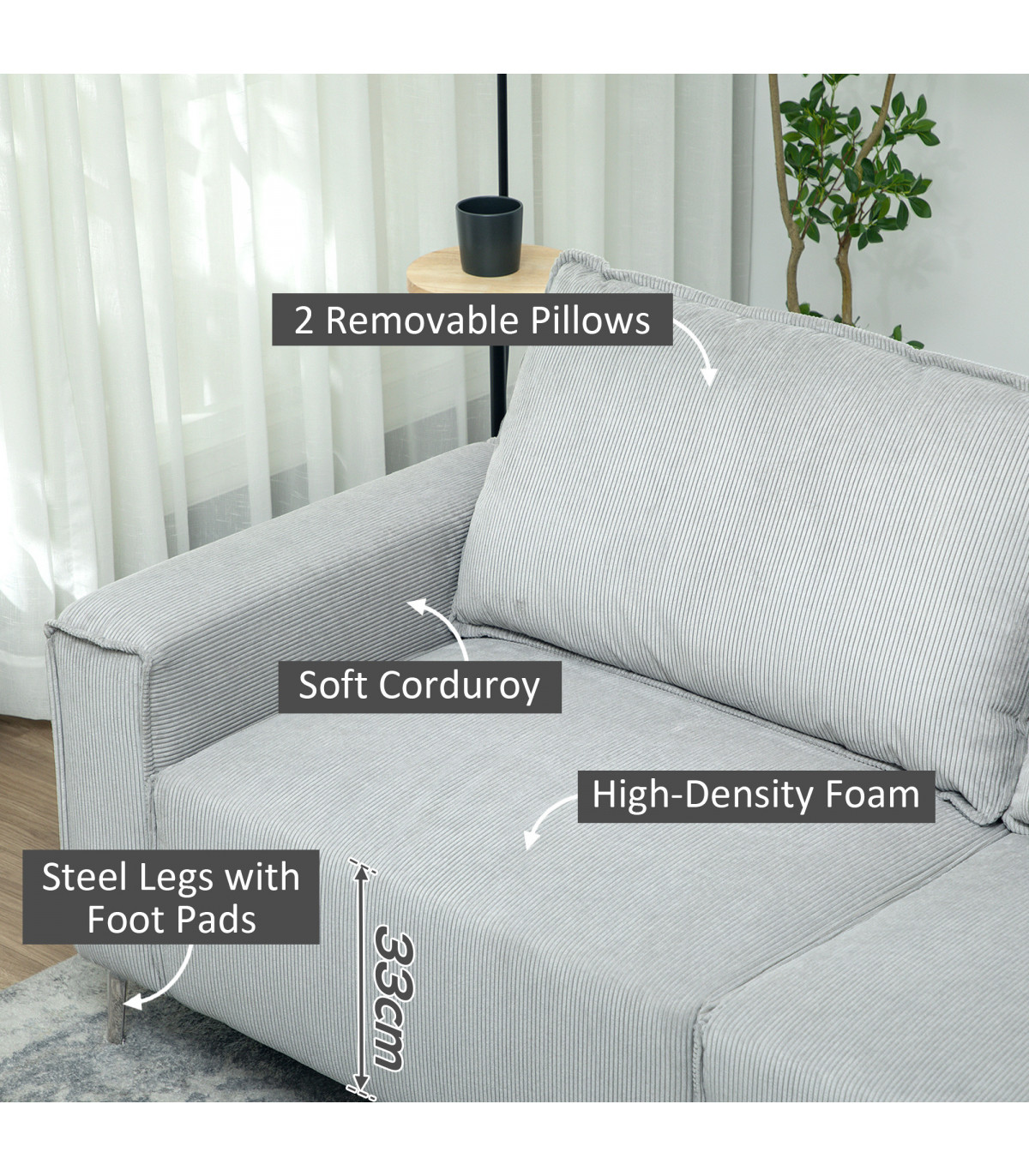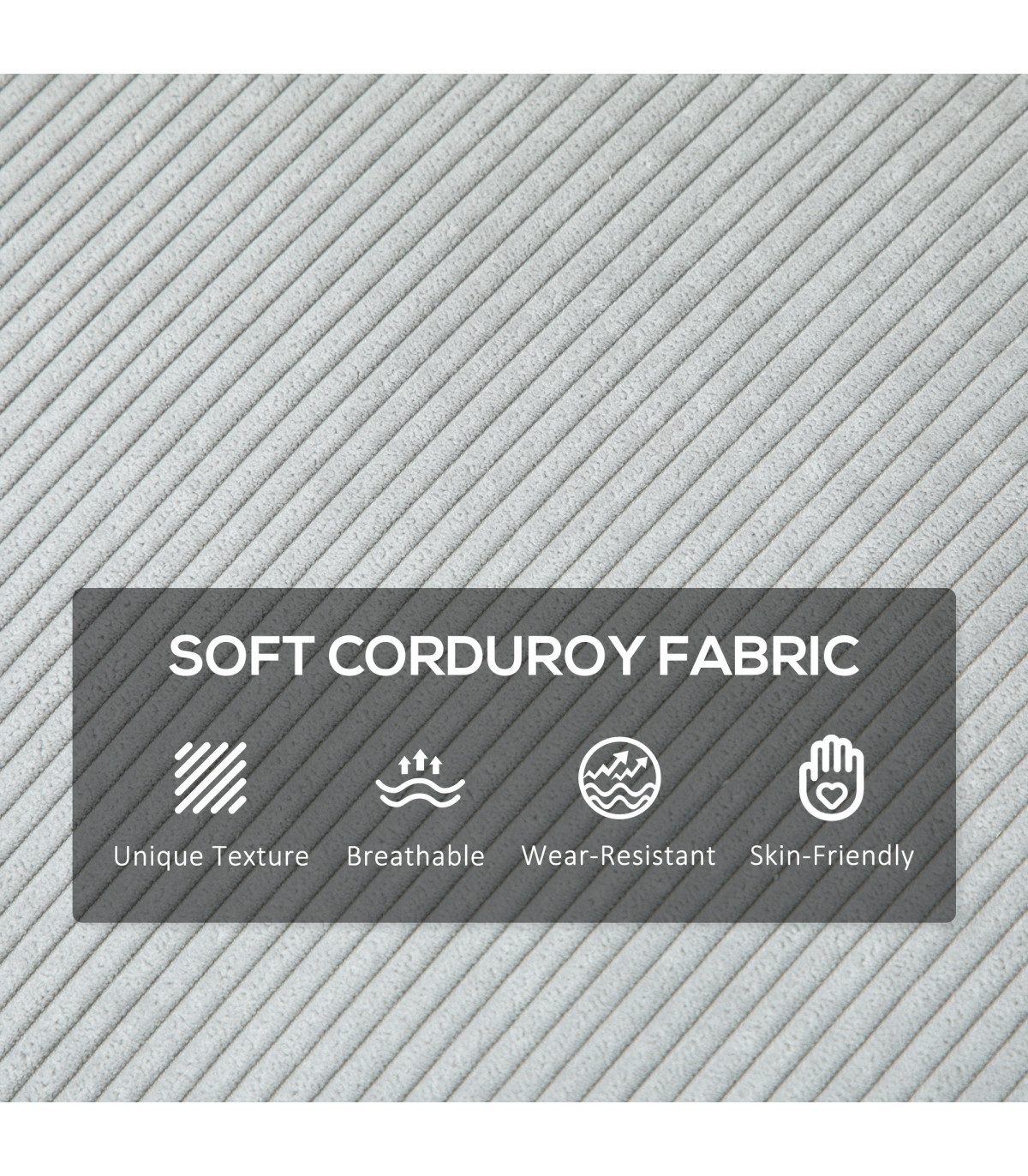 - Materials: 100% Polyester Corduroy, Foam, Multi-layered Board, Steel
