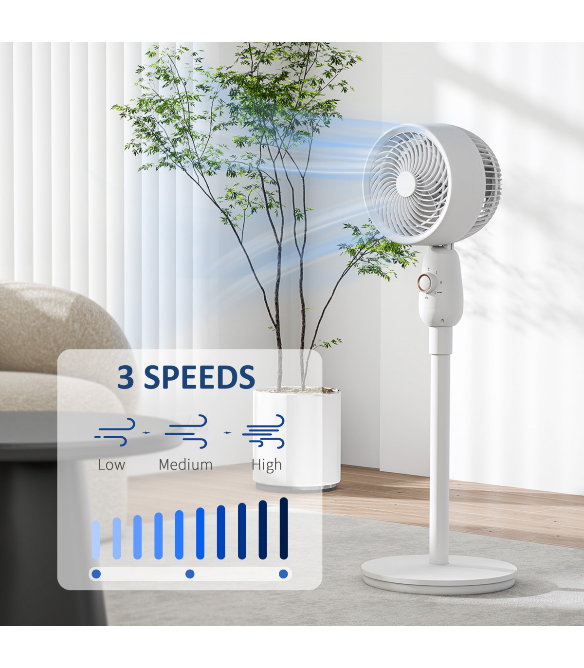 - Oscillation Function: Ensures even air distribution throughout the space.