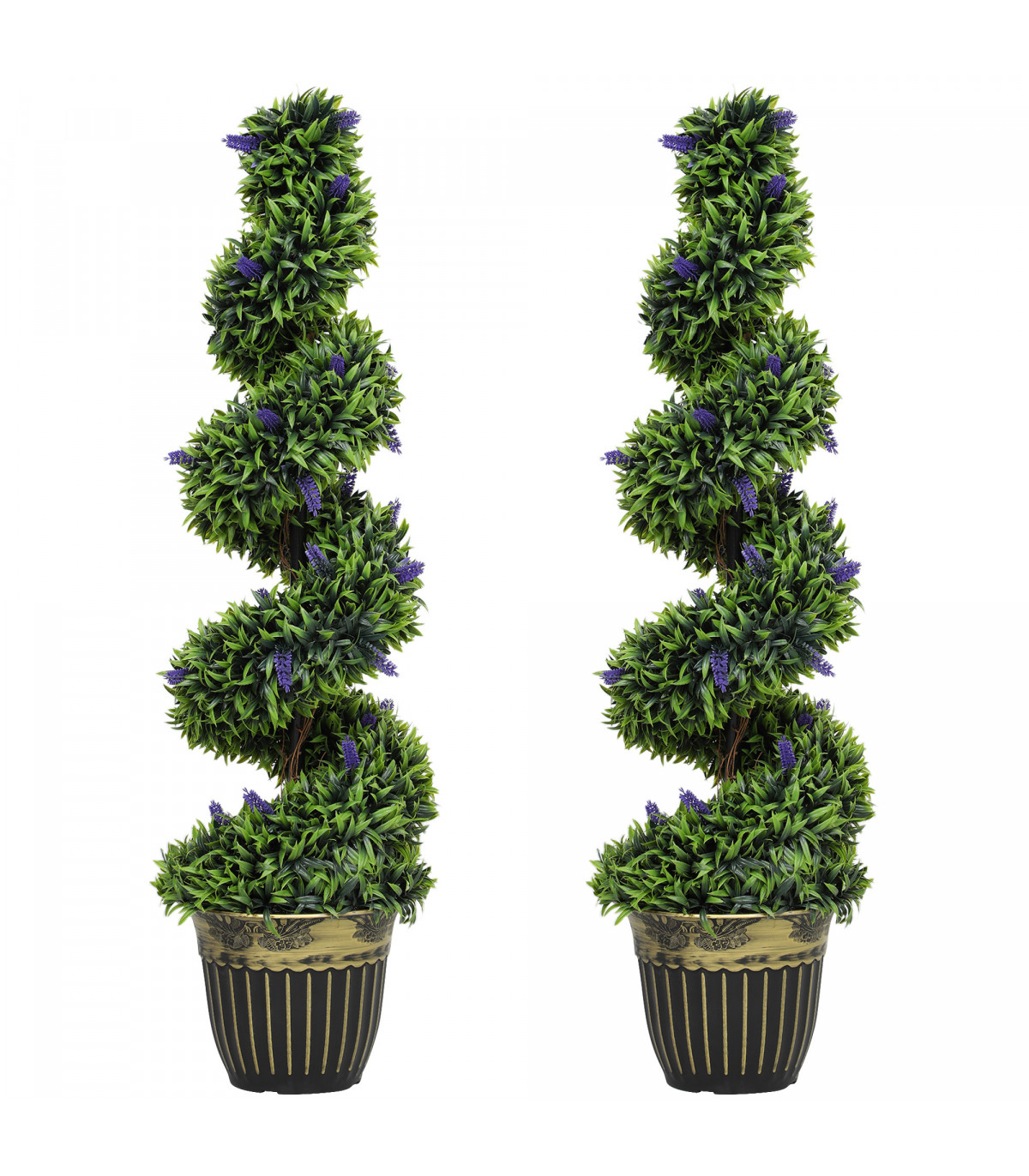 Enhance your living space with this elegant two-piece set featuring a stunning spiral design. Adorned with vibrant green leaves and accented by striking blue lavender, this plant set brings a splash of colour and sophistication to any indoor or outdoor environment.
