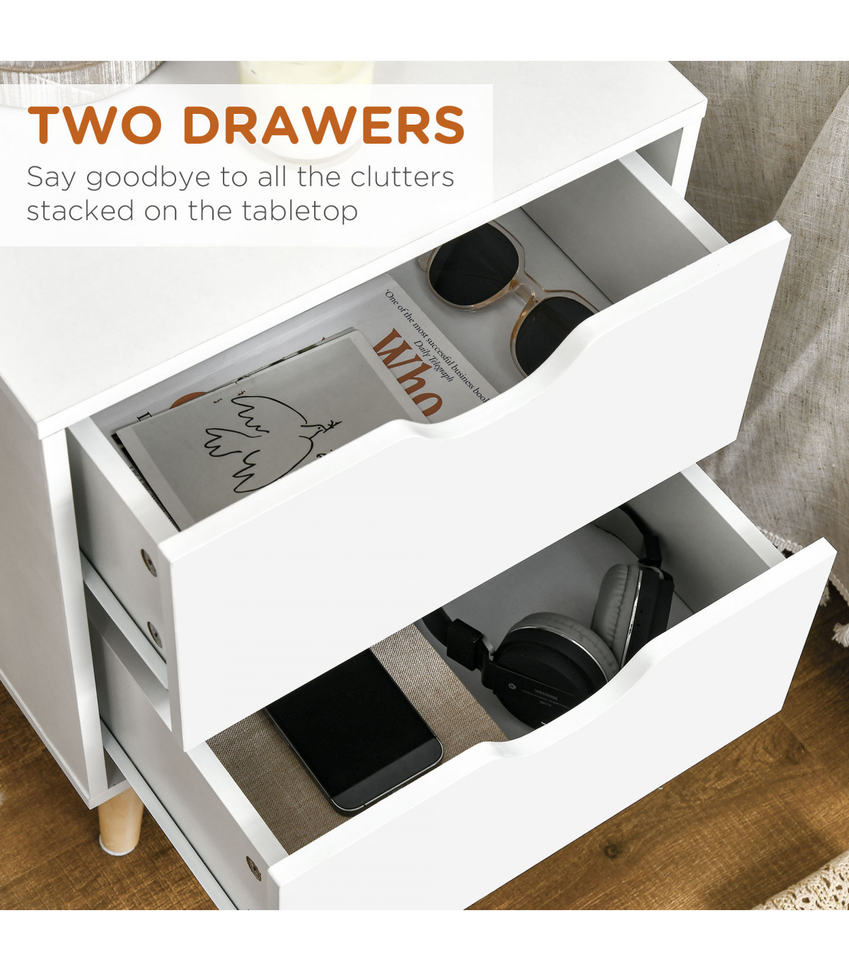 - Ample Storage: Two spacious drawers keep your night essentials and accessories organised and within reach.