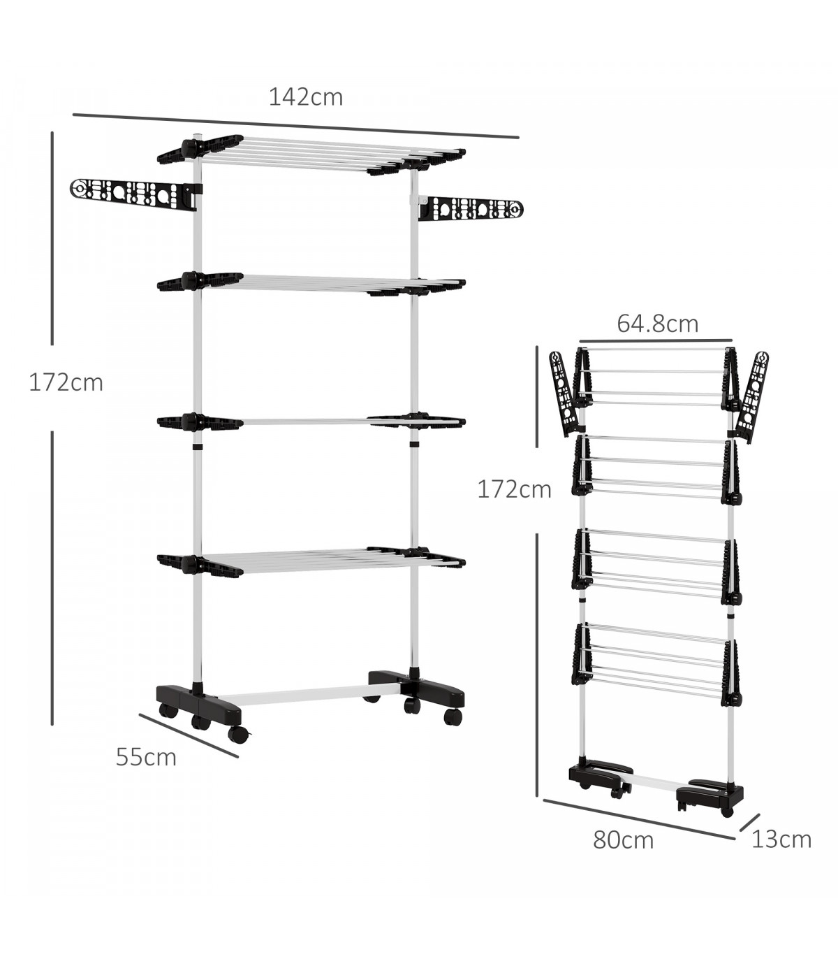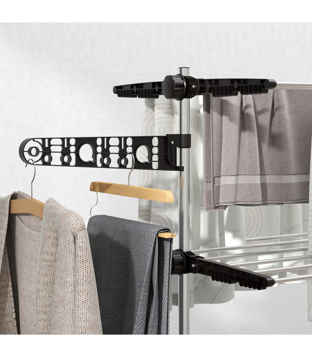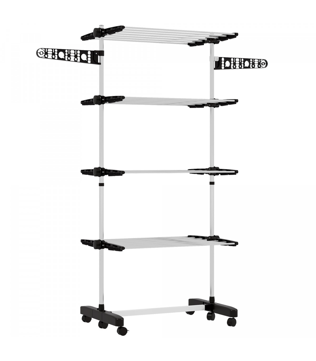 ● Folding down shelves, rotatable arms and inwards-folding legs: air dryer stores away easily