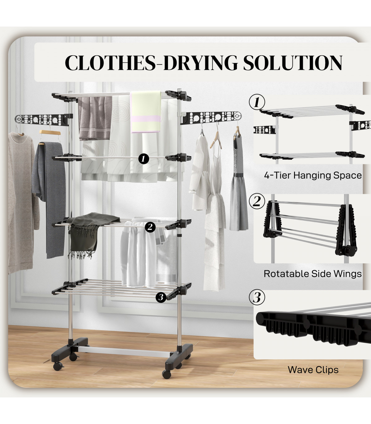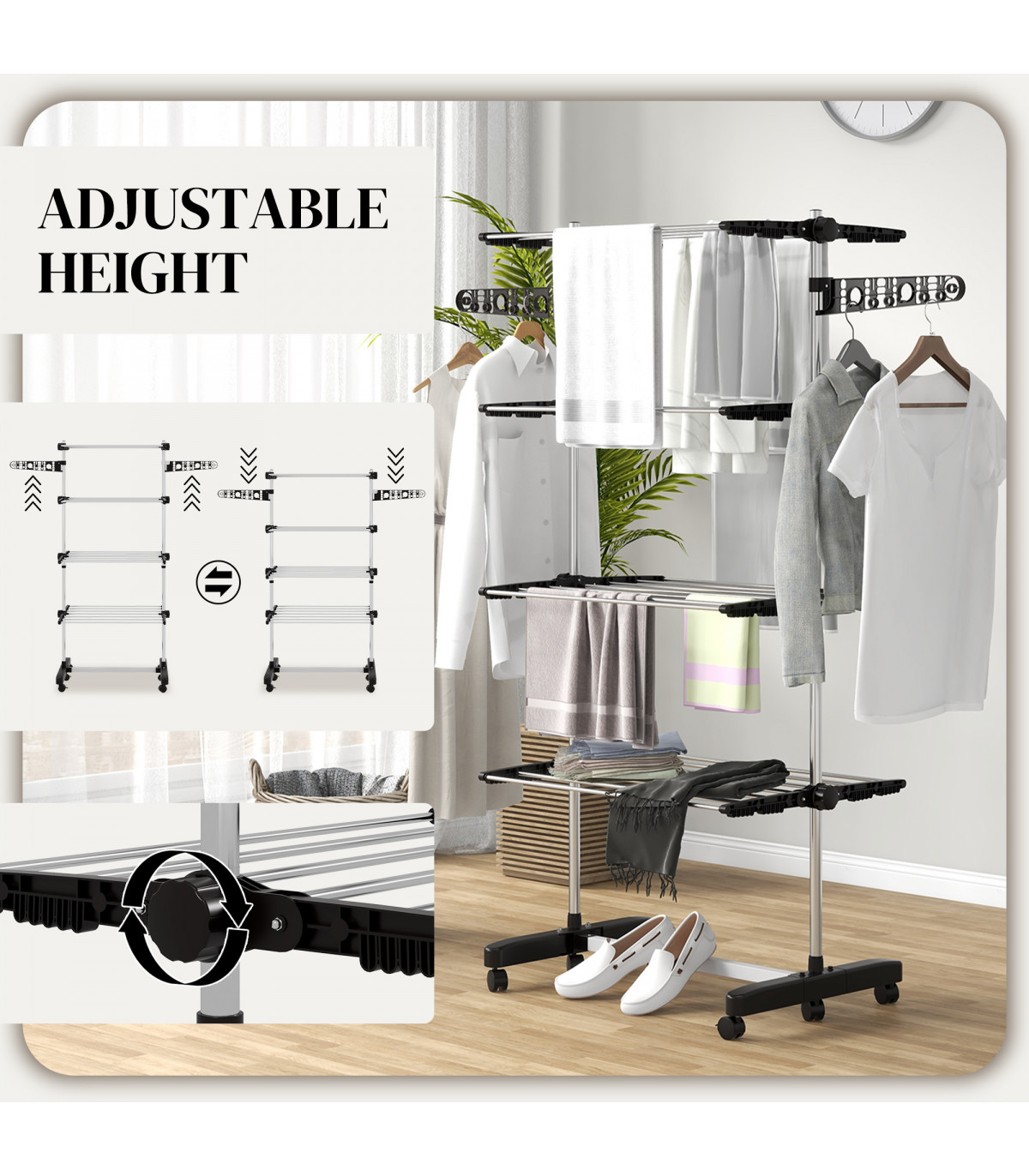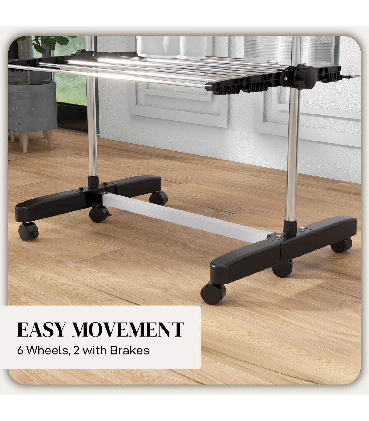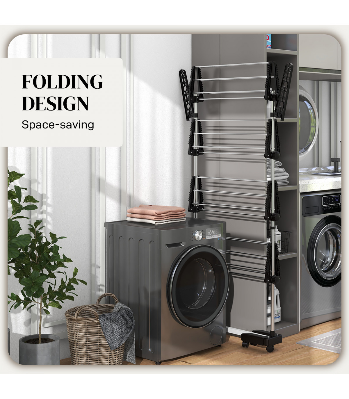 ● Folding down shelves, rotatable arms and inwards-folding legs: air dryer stores away easily