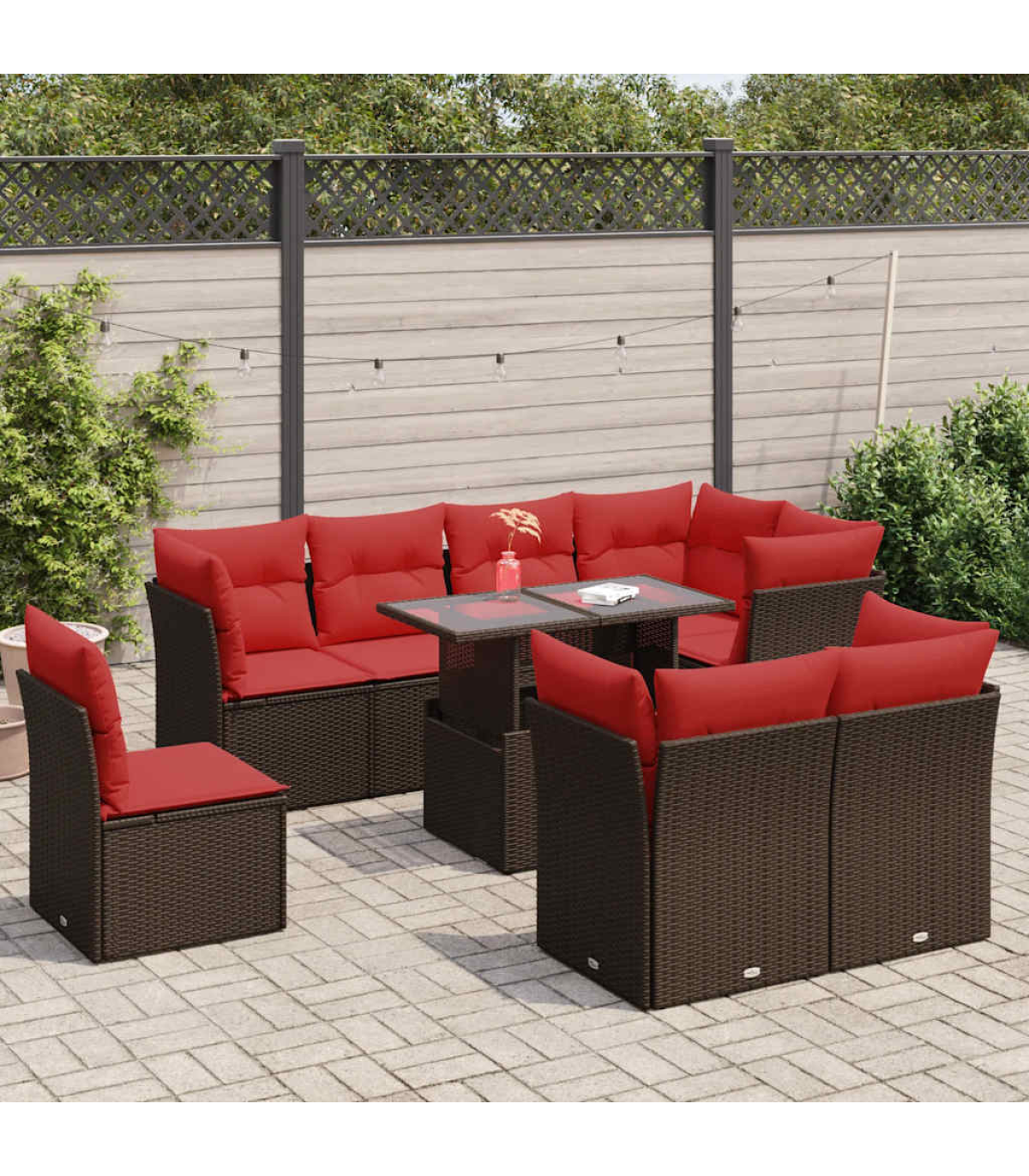 This garden sofa set is the perfect addition to your backyard, terrace, or patio, providing a comfortable and inviting space for chatting with family and friends or simply relaxing and enjoying the outdoors.Durable material: PE rattan, also known as poly rattan, is a strong, low-maintenance synthetic material that looks like natural rattan. It's lightweight, easy to clean, and commonly used for outdoor furniture due to its durability and weather-resistant properties.Storage function with water-resistant bag: Each garden seat features storage space under the seat, complete with a water-resistant bag for storing cushions, toys, and other items. The inner bags have a top cover and can be securely fastened to the seats with hook-and-loop fasteners for added stability.Removable and washable cover: These seat cushions feature removable covers for easy washing and maintenance.Modular design: This outdoor furniture set has a modular design, making it completely flexible and easy to move around, so you can create a customised outdoor furniture arrangement.Good to know:To make sure your outdoor furniture stays beautiful, we recommend protecting it with a waterproof cover.