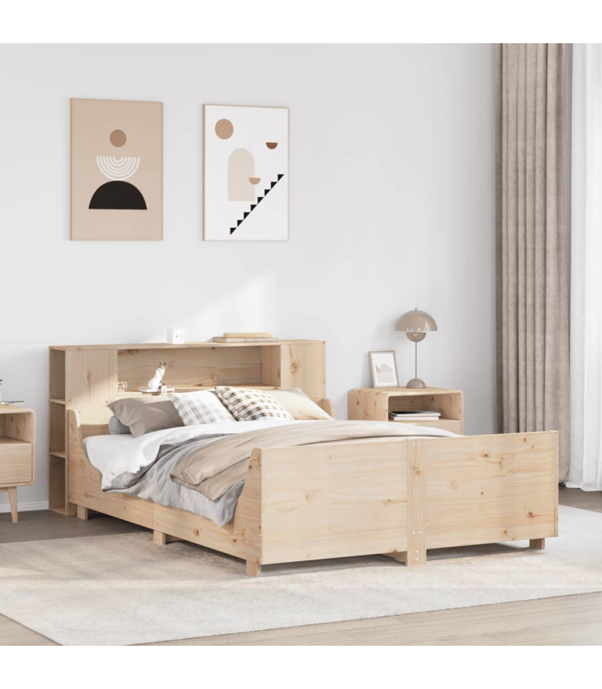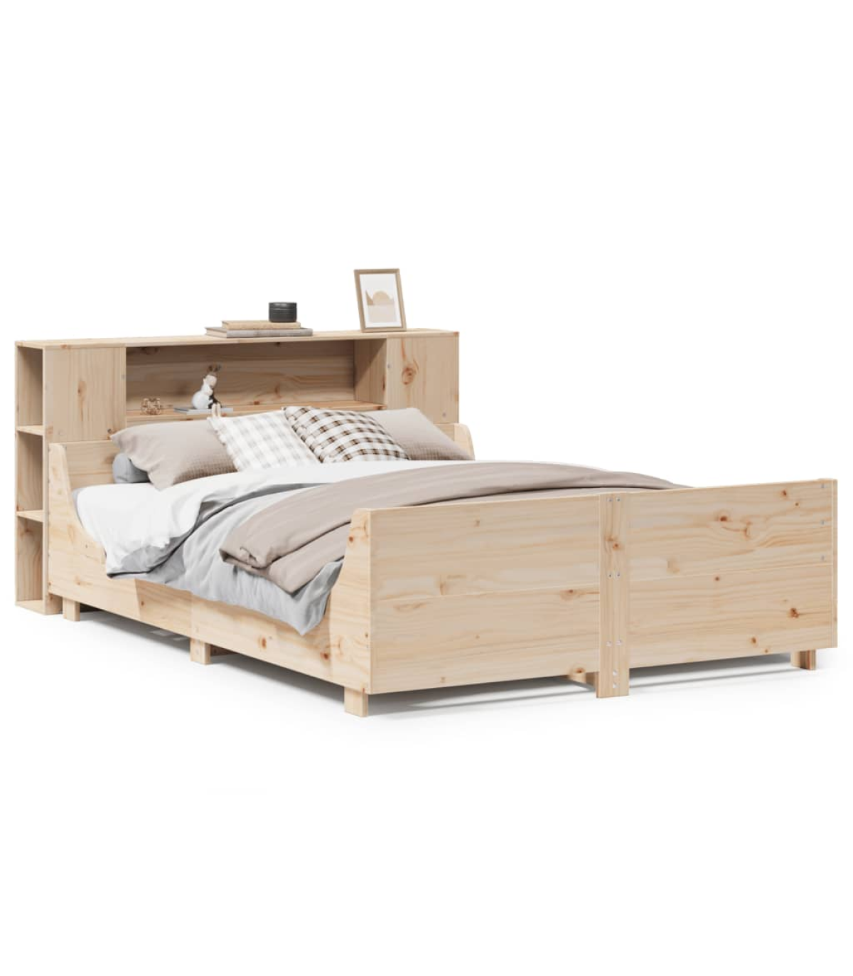 Get a better restful night's sleep from this bed frame! It makes a welcoming addition to any bedroom. Stable and long-lasting frame: Solid pinewood is known for its strength and durability. Its straight grains and distinctive knots contribute to its rustic charm.Make full use of space: With 7 convenient compartments, this headboard is a space-saving option that can replace the need for a bedside table, helping maximise your bedroom space, and making it ideal for small or limited spaces.Functional headboard and footboard: The headboard and footboard of the bed base keep your mattress in place. Also, the headboard provides you with excellent back support when you sit up in bed to read or watch TV.Slatted base for optimal support: The bed frame is equipped with a slatted base for support and breathability for your mattress. Good to know:A mattress is not included with this bed. We do offer a various selection of mattresses. You can check our shop for a matching mattress.