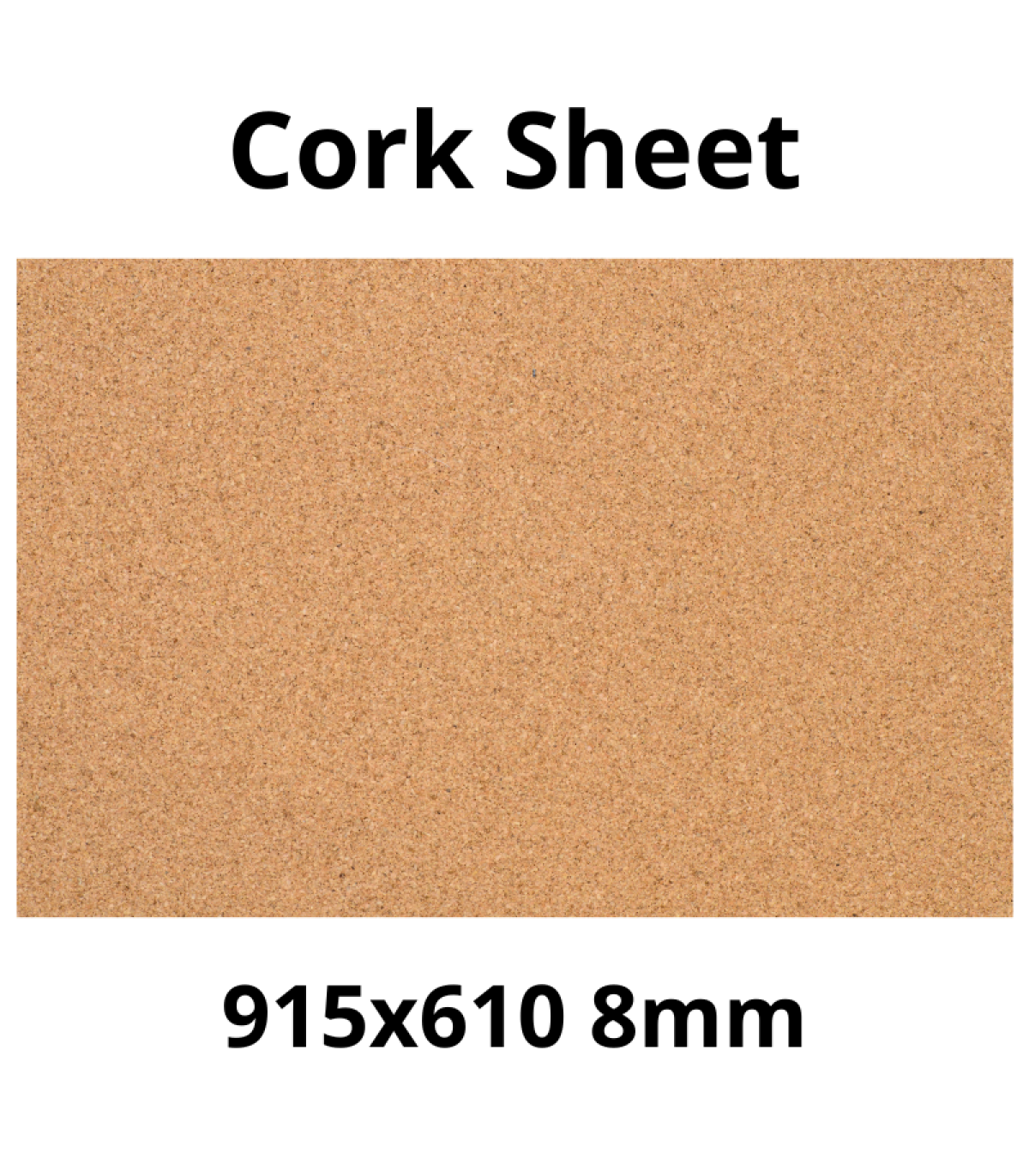 Elevate crafting with limitless possibilities using the Cork Sheet. Enhanced with a 915x610mm size and a thickness of 8mm, this pack of 1 offers a lightweight and flexible build for décor and DIY projects. Durable and versatile, it's the must-have addition for any expert or aspiring crafter.