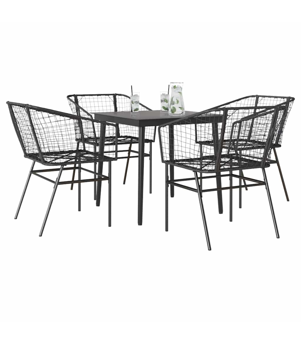 vidaXL 5 Piece Garden Dining Set Black Poly Rattan Glass