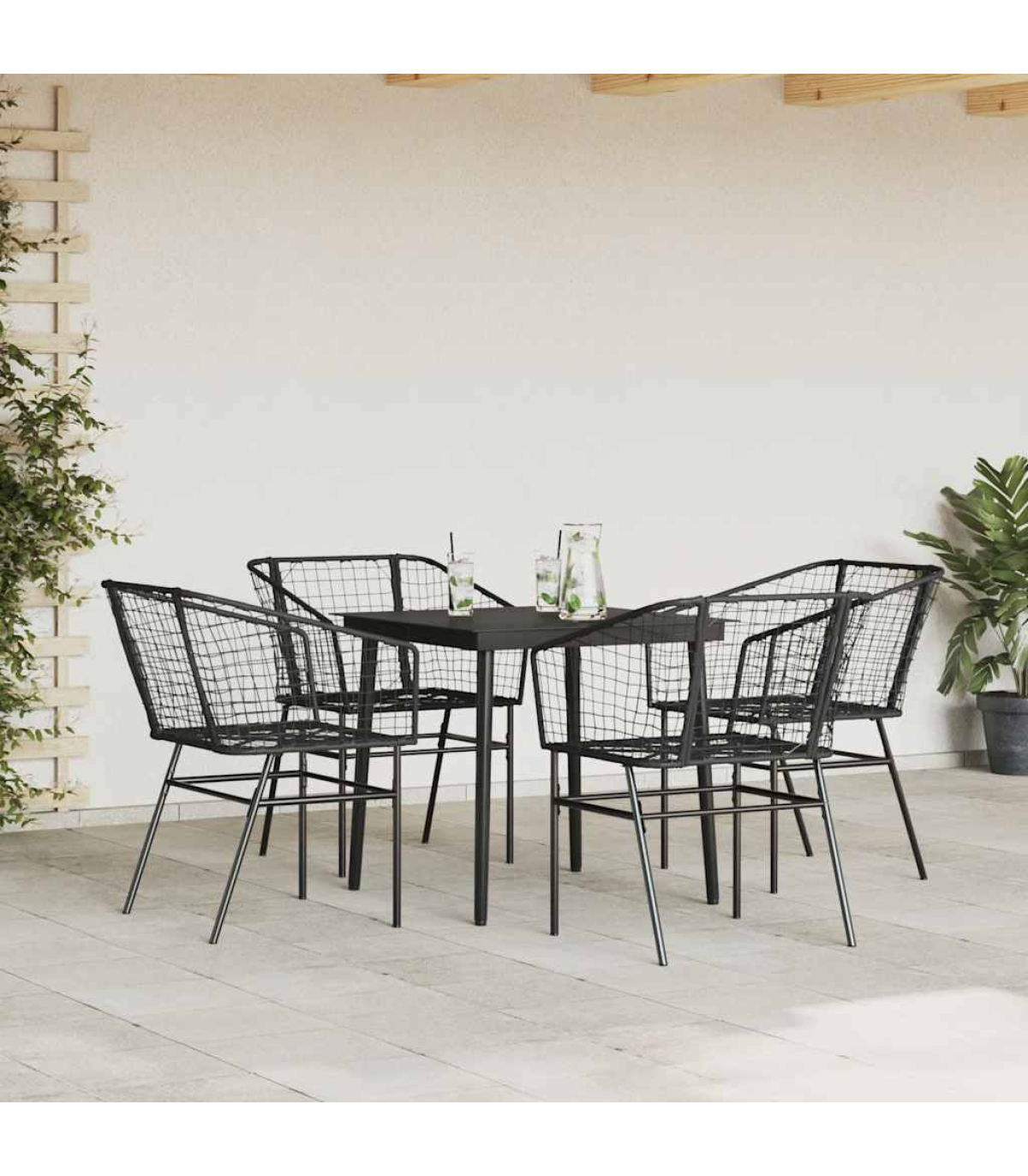 This garden dining set is a great choice for al fresco dining or just relaxing in the garden, backyard, or on the patio. Durable material: PE rattan, also known as poly rattan, is a strong, low-maintenance synthetic material that looks like natural rattan. It's lightweight, easy to clean, and commonly used for outdoor furniture due to its durability and weather-resistant properties.Robust and stable frame: The powder-coated steel frame is strong, stable, durable, and resistant to corrosion and harsh weather, ensuring long-lasting performance.Practical backrest and armrest: This garden chair features a backrest and two armrests that offer optimal support and comfort for users.Glass tabletop: The outdoor table's top is made from strong and durable tempered glass, making it easy to clean with a damp cloth and adding a touch of elegance to your outdoor space. Good to know:To make sure your outdoor furniture stays beautiful, we recommend protecting it with a waterproof cover.