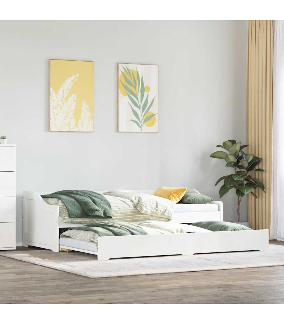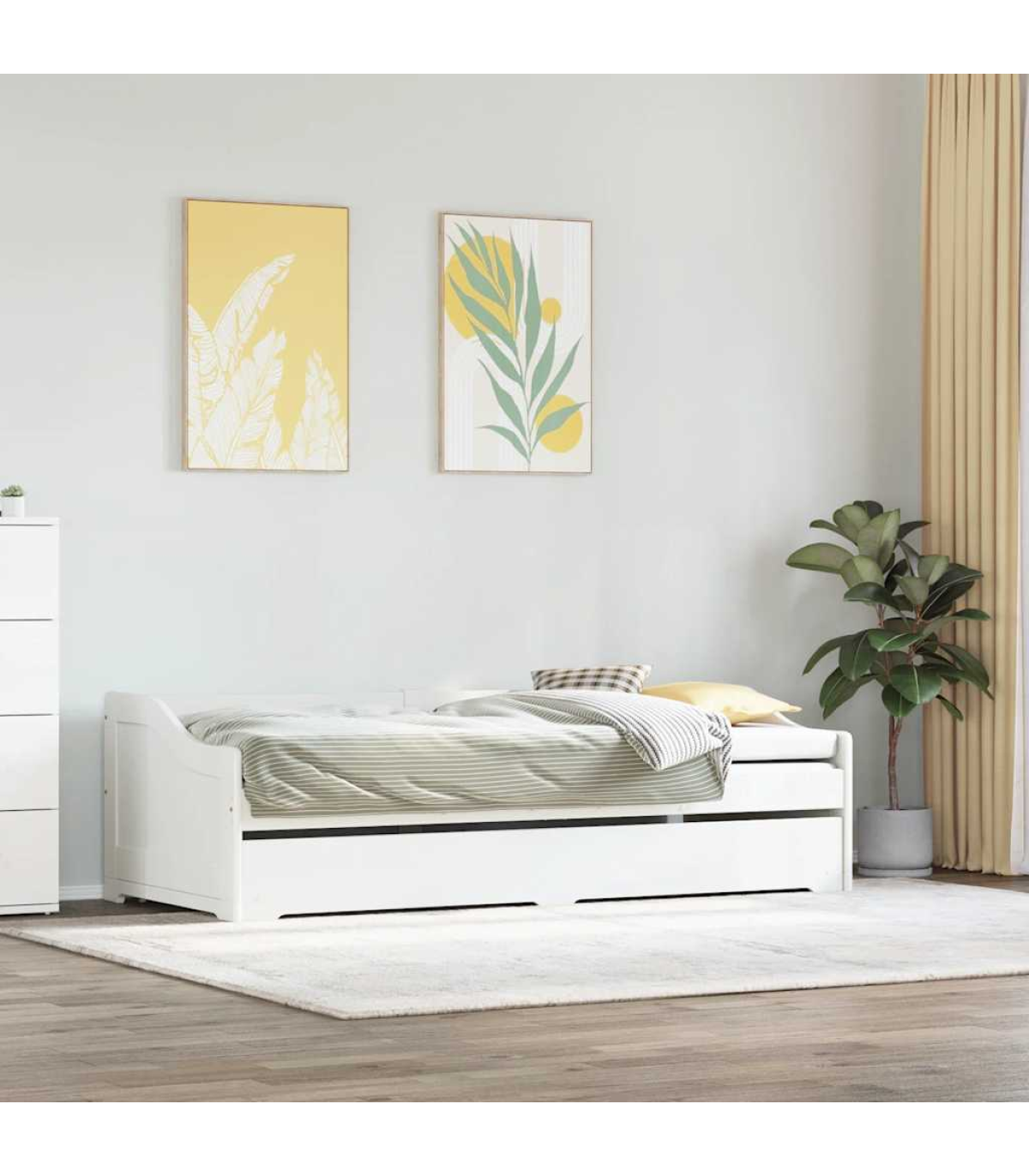This stylish daybed provides both a cosy place to rest and practical storage space, making it the perfect addition to any bedroom or living area. Stable and long-lasting frame: Solid pinewood is known for its strength and durability. Its straight grains and distinctive knots contribute to its rustic charm.Slatted base for optimal support: The guest bed is equipped with a slatted base for support and breathability for your mattress.Versatile daybed: The sofa bed functions as a sofa during the day and easily converts into a double bed at night by pulling out the trundle, providing a convenient solution for hosting guests and maximising space. Good to know:A mattress is not included with this bed. We do offer a various selection of mattresses. You can check our shop for a matching mattress.