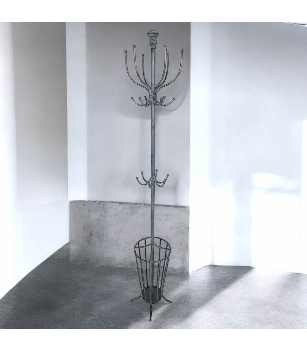 This metal style coat/umbrella stand is a great addition to any hallway or home
