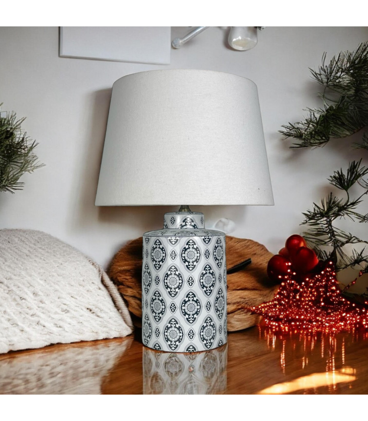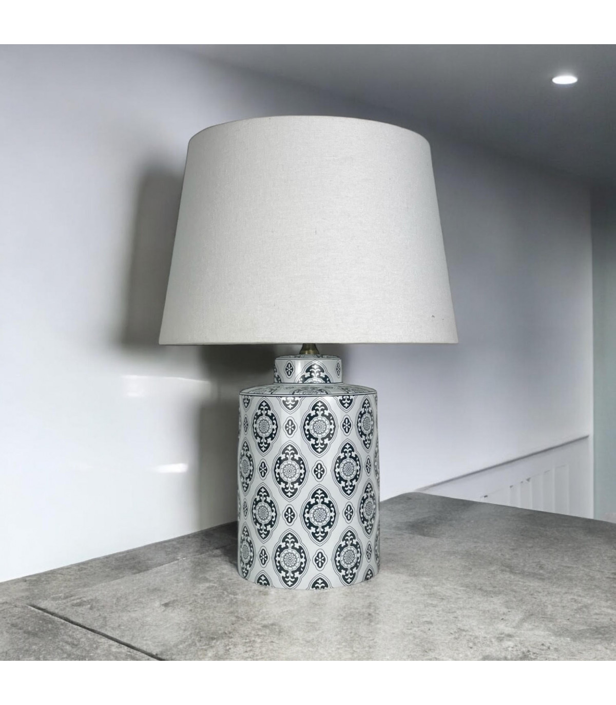 A traditional design ceramic table lamp base and shade. The lamp is individually switched by an inline rocker switch and is double insulated to allow for safe use without need of an earth wire. Great for lighting in any setting and ideal in a living room or bedroom.
