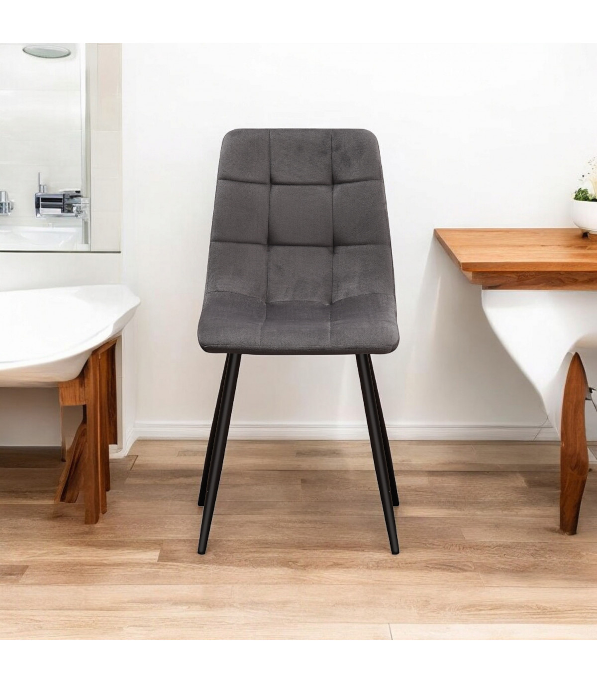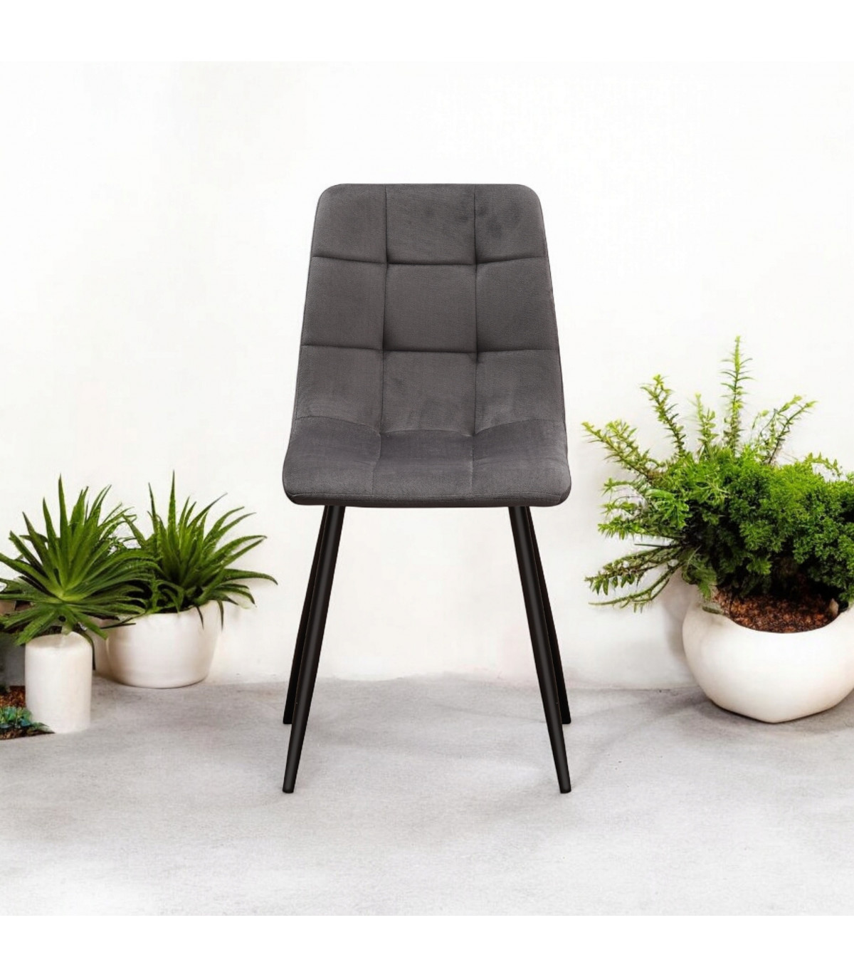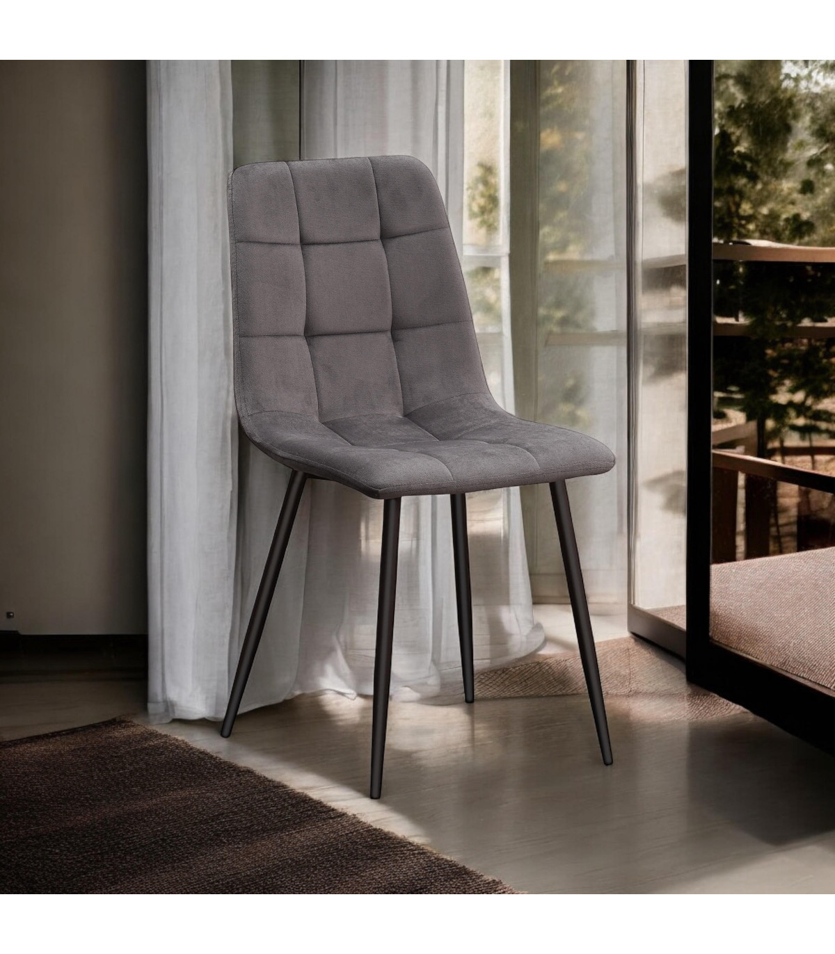 GREY FABRIC CHAIR BLACK METAL LEGS