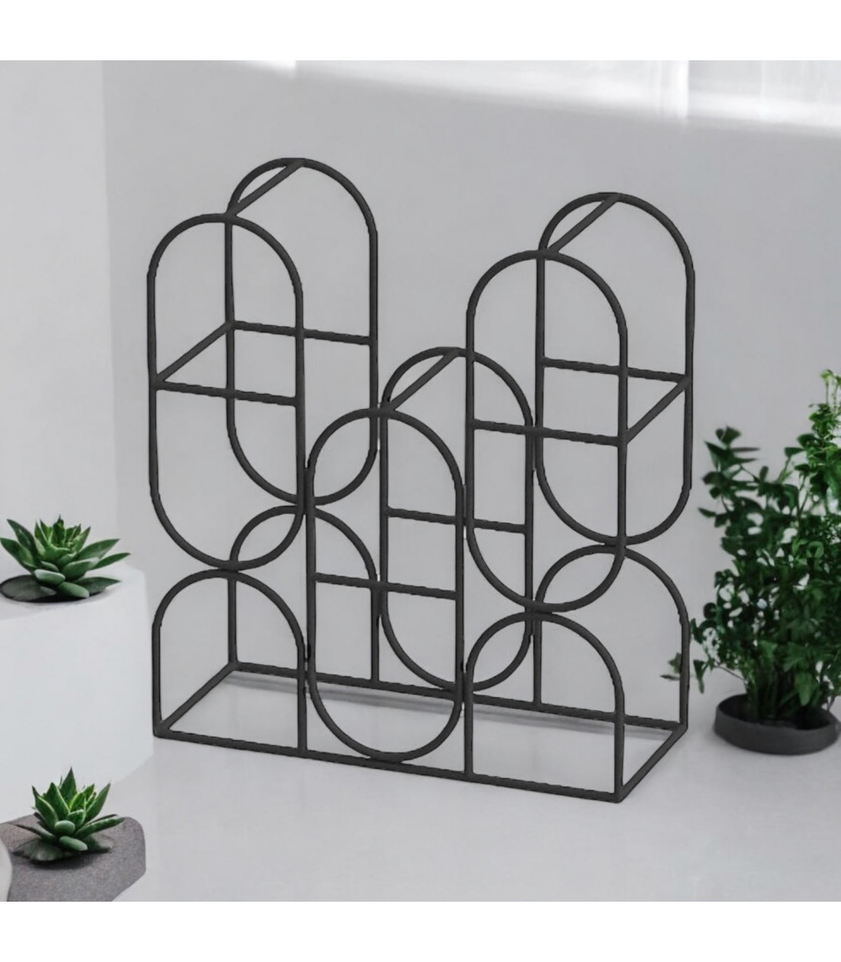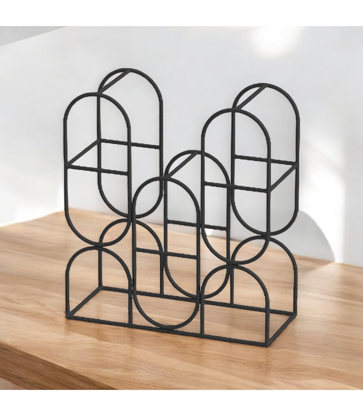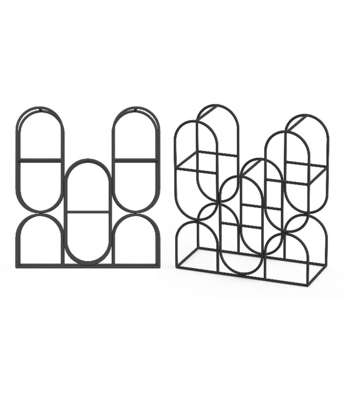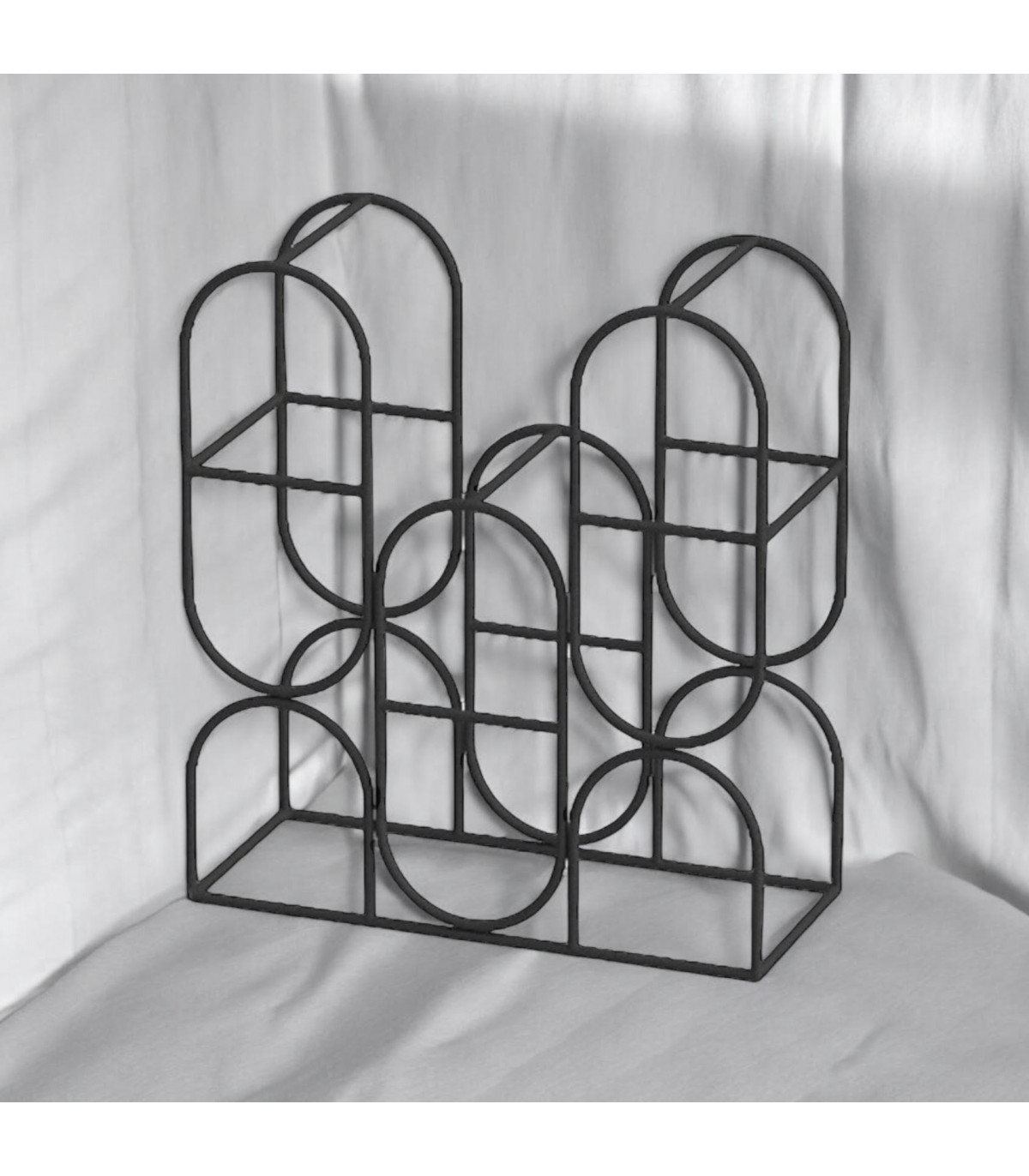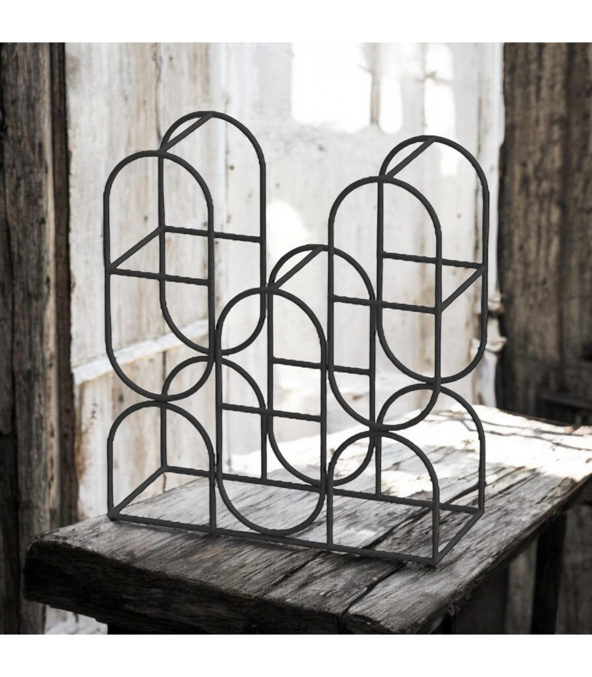 14" CAST IRON BLACK 8 BOTTLE WINE RACK