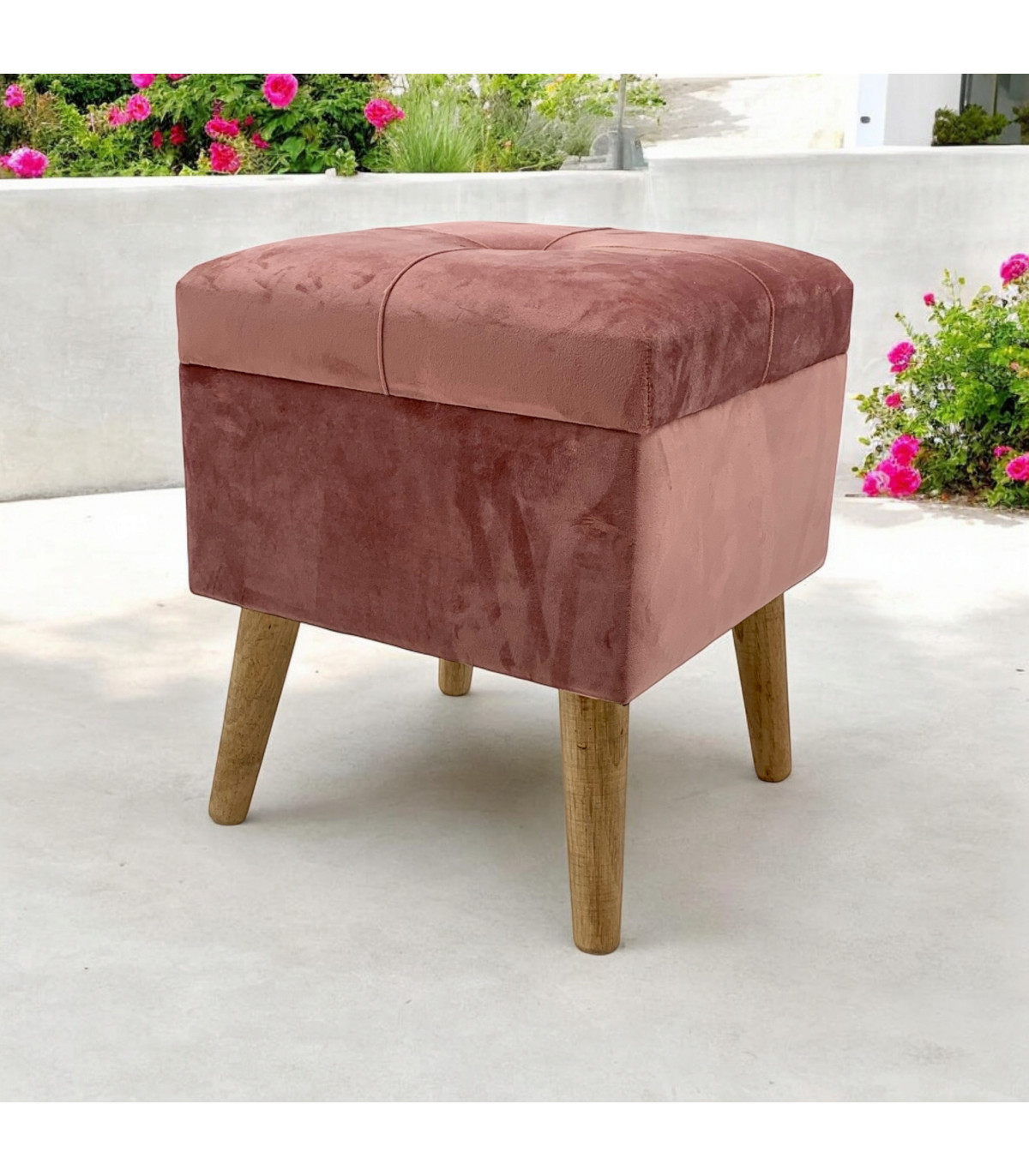 This stunning velvet trunk is perfect for resting your feet after a busy day. Storage compartment, Wooden legs