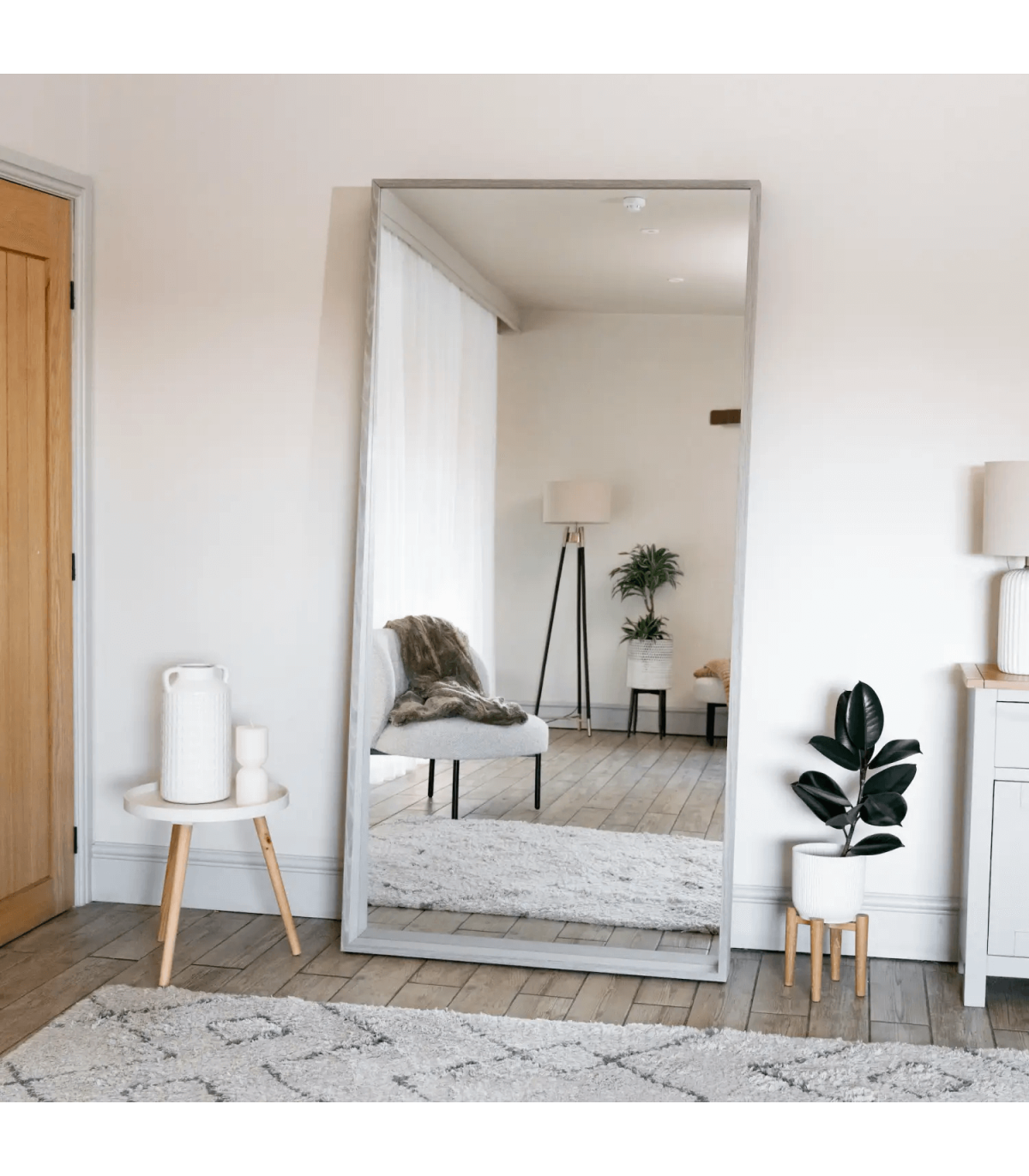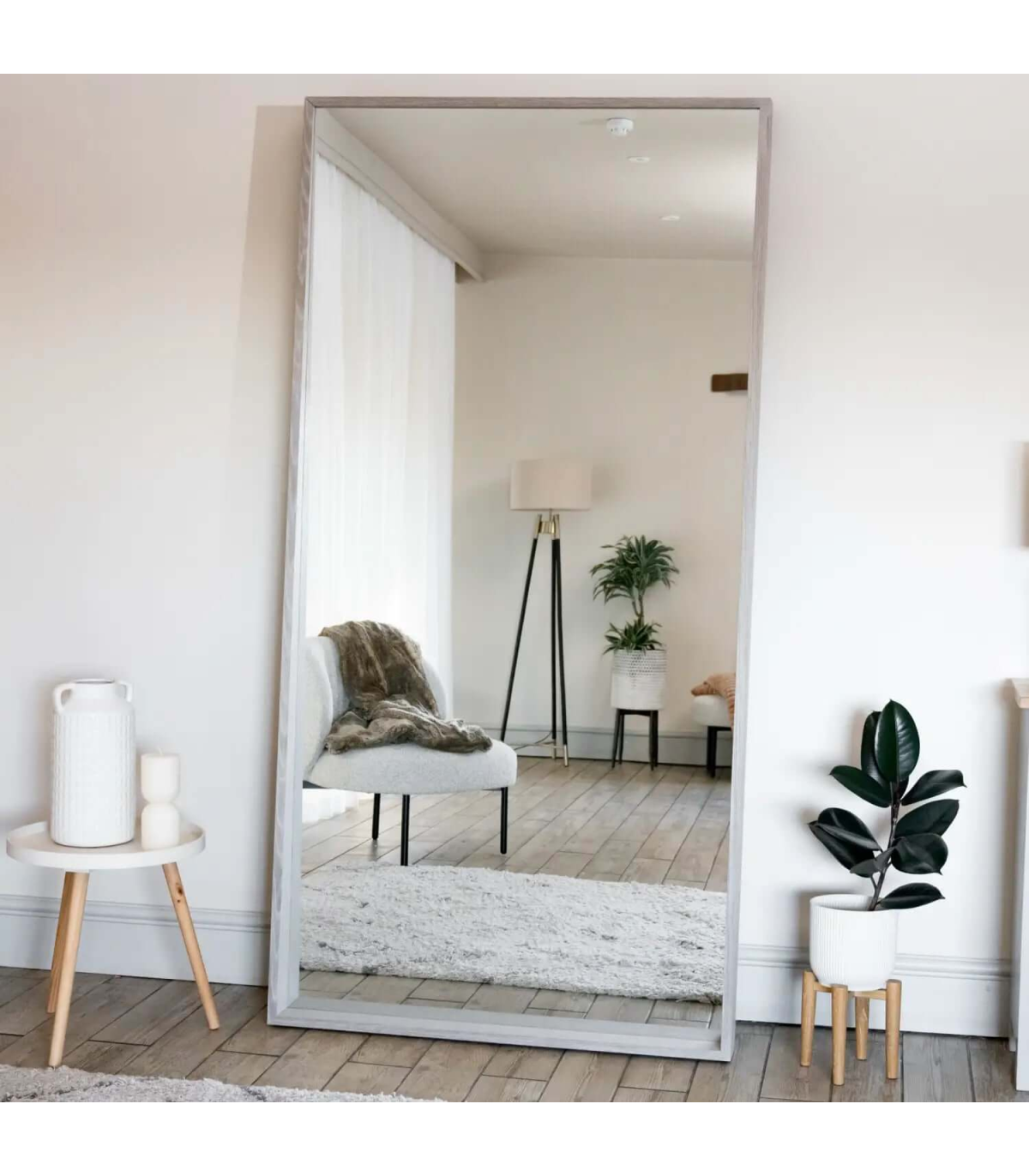 A Stylish Full-Length Leaner Mirror with a Grey Oak Finish
