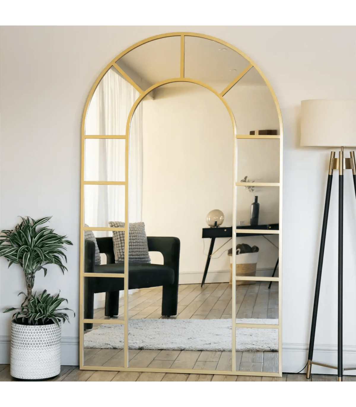 The Mio is available in different colours and a range of sizes, making it a versatile choice for those seeking to complement the style of any room with a signature window mirror that subtly nods to the elegance of gold metal arched design.