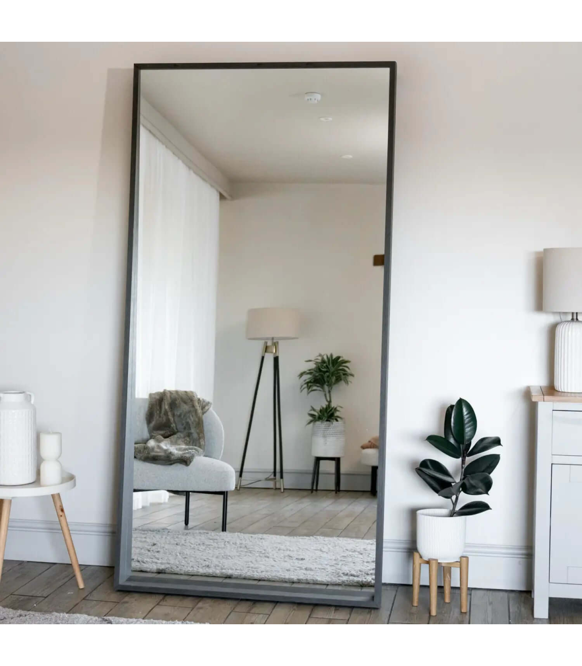 The Hanaka Black Oak Leaner Mirror brings bold sophistication to your space with its sleek black oak veneer finish. Measuring 200cm tall by 100cm wide, this full-length mirror is ideal for bedrooms, living rooms, hallways, or dressing areas.