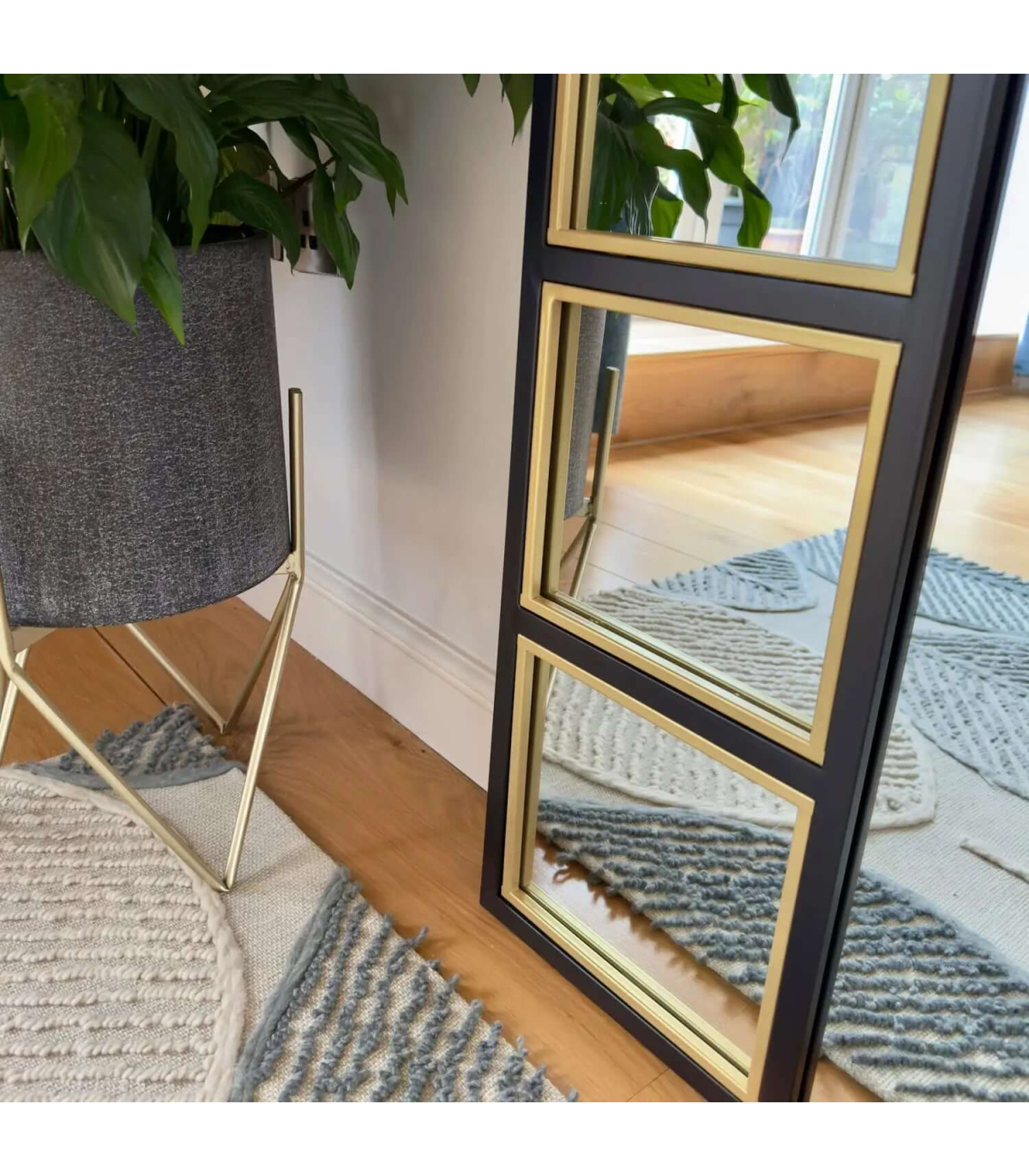 The Mio black & gold arched metal window mirror creates a striking focal point in any room. Its modern, elegant design and distinctive window frame border enhance your space while offering a refined touch of sophistication. This gold metal arched accent is thoughtfully crafted to suit diverse interior styles, ensuring it blends seamlessly with both traditional and contemporary décors.
